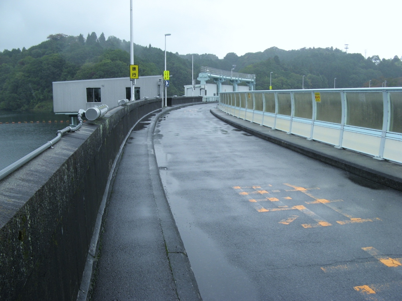 ダム堤体上は車も通行が可能です。高さが82mもあり、ダム堤体上から下流側を覗くと大変迫力があり、ホロージェットバルブから放流している様子を見ることができてよかったです。
