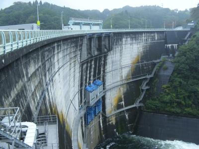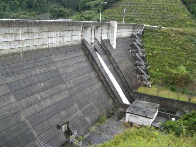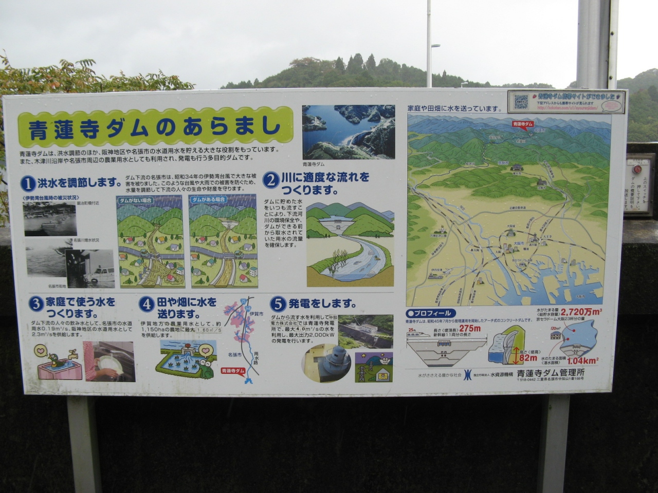 青蓮寺湖は青蓮寺ダムによって造られた人造湖です。青蓮寺湖を観に行ったついでに青蓮寺ダムを見学してきました。青蓮寺ダムは洪水調節と灌漑、上水道、発電などを目的とした堤高82m、堤頂長275mのアーチ式コンクリートダムです。