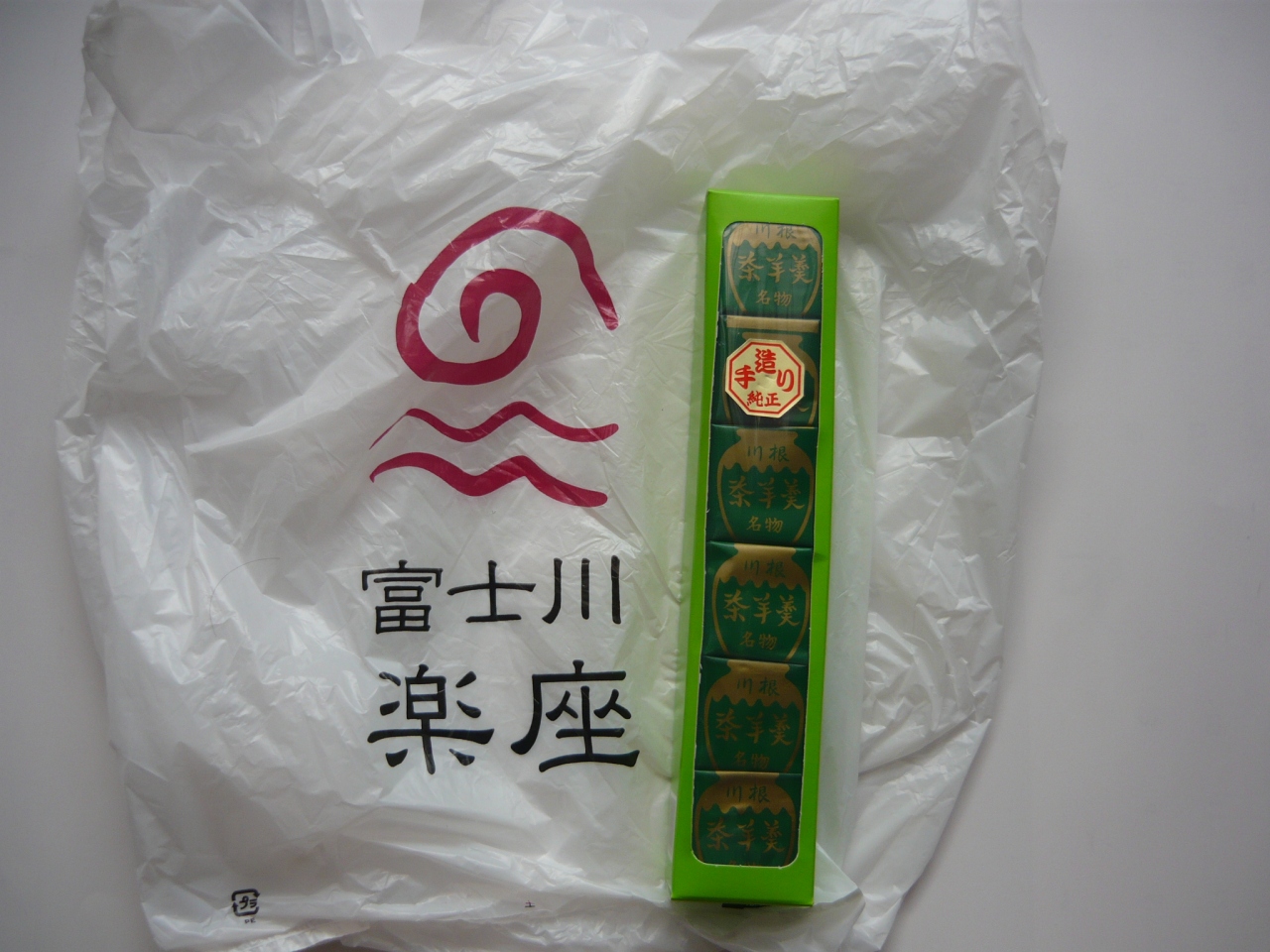 大手旅行会社のバスツアーで富士川SAに休憩駐車した時に「道の駅 富士川楽座」に立ち寄りました。道の駅としては比較的規模が大きく、レストランやカフェ、土産物売り場、無料休憩所、情報コーナーなど道の駅としての機能が揃っていて、そのほかに観覧車やプラネタリウム、アスレチックなどもあり多目的複合型施設になっています。施設内のどこからでも富士山が見えるようになっているそうですが、残念ながら訪れたときは天気が悪くて富士山を望むことができませんでした。お土産に“茶羊羹”を購入しました。