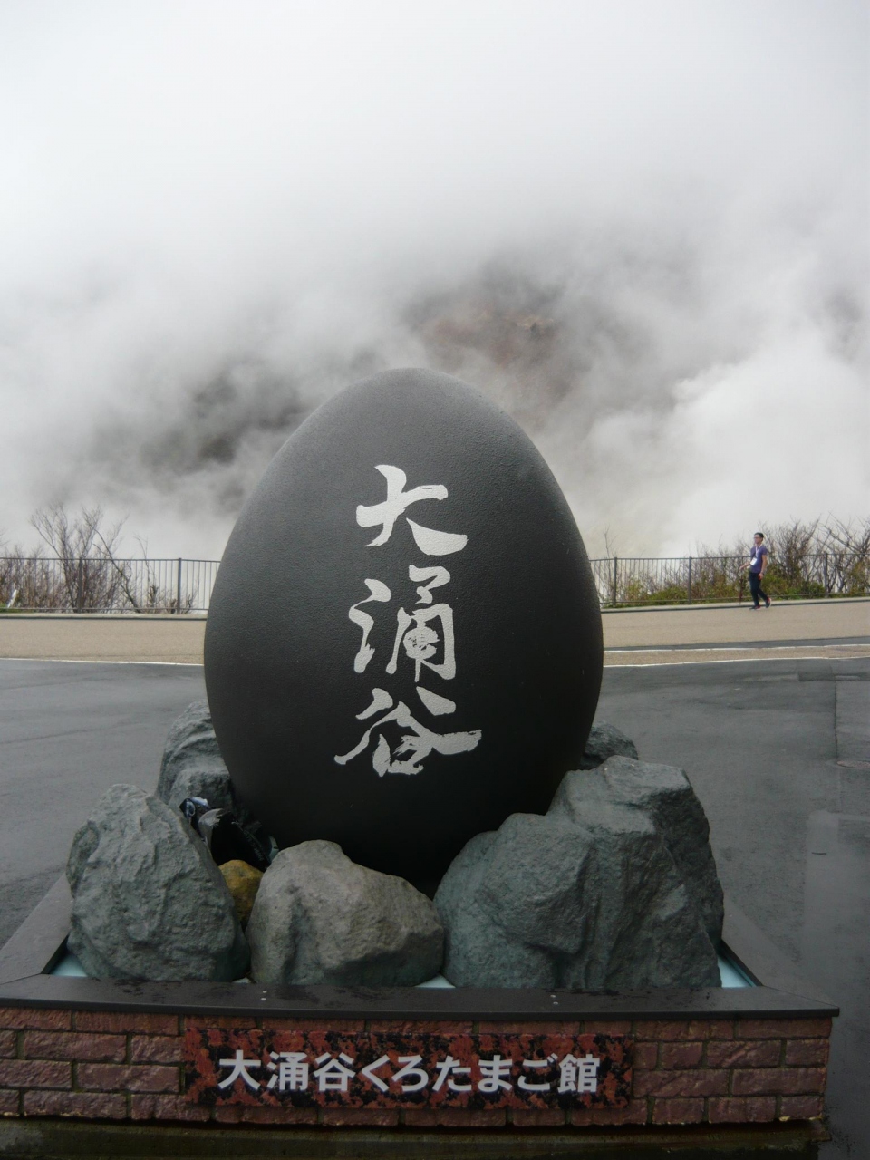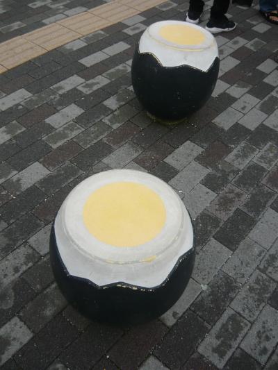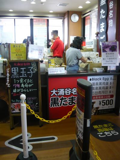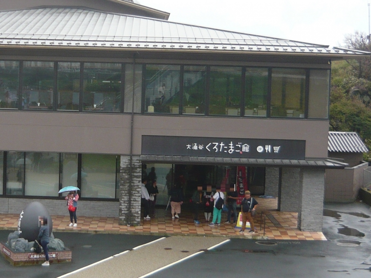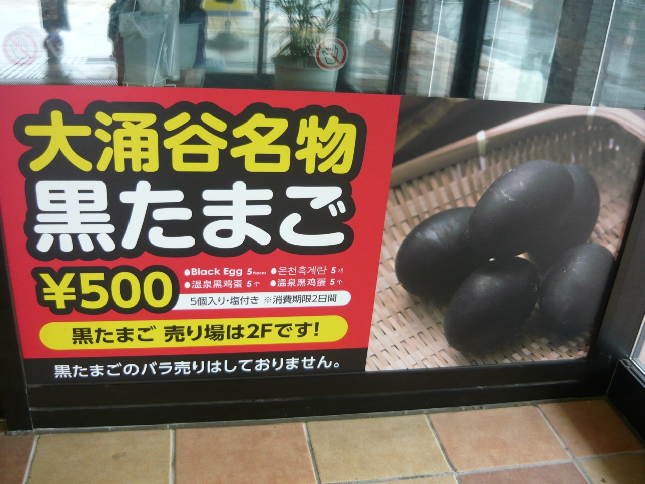 大涌谷を観光したので名物の“黒タマゴ”を買い求めました。建物の二階が売り場になっていて、黒タマゴ以外にお土産も多数揃っています。