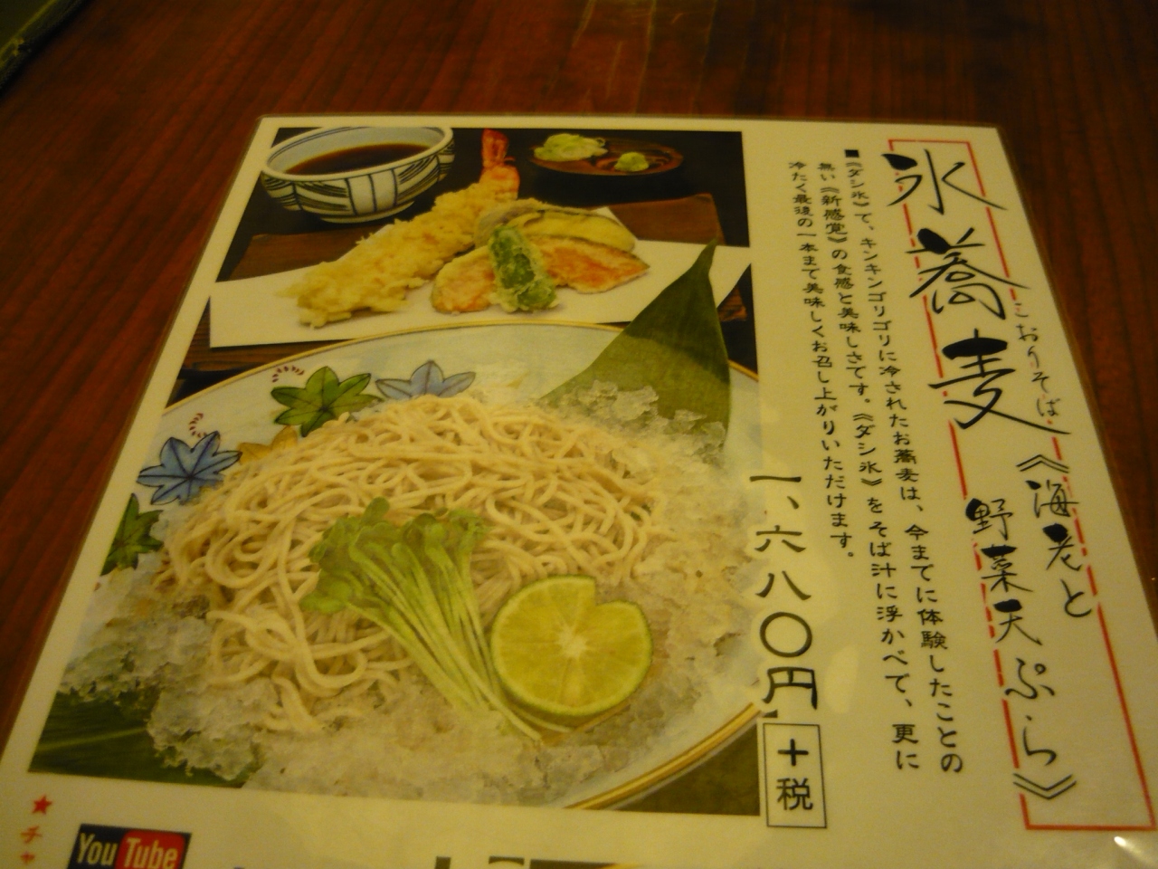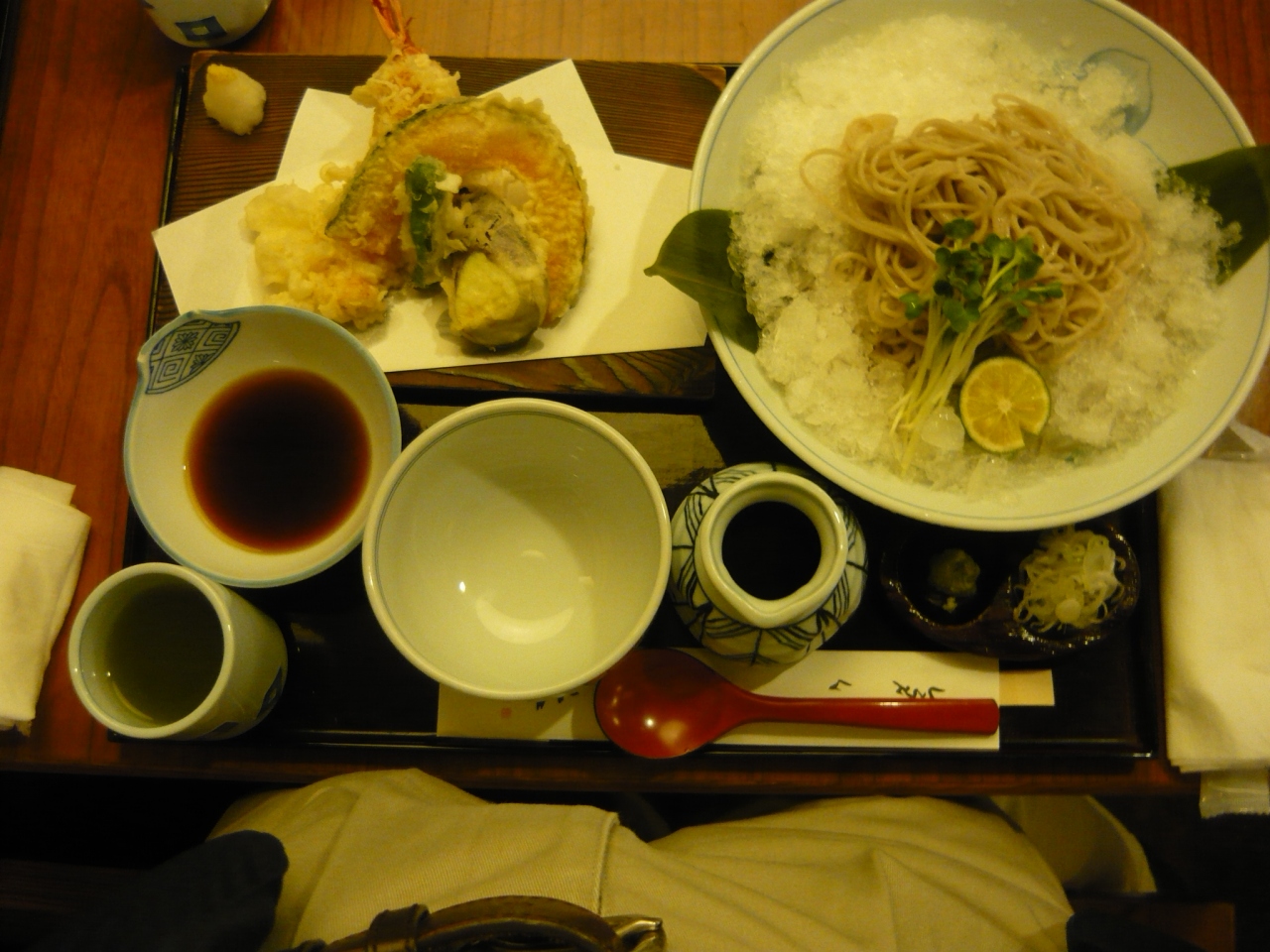 鶴岡八幡宮の三の鳥居の目の前にある蕎麦屋さんです。入口からは想像できないほど店内は広くてゆっくり食事することができました。頂いたのは、海老と野菜のテンプラがついた“氷蕎麦 1680円”。出汁氷の上に盛られ、キンキンに冷やされたボリュームたっぷりのお蕎麦はコシがあって美味しかったです。