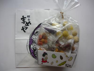 店名にある通り“豆菓子”の専門店です。小町通りを歩いていると店頭に沢山の人だかりが出来ていたので引き込まれるように入店しました。