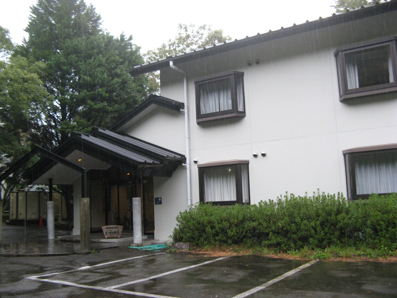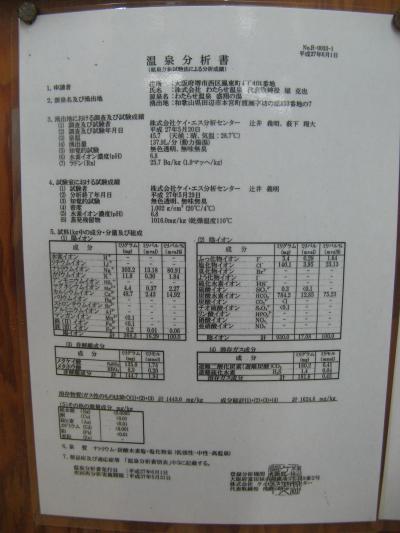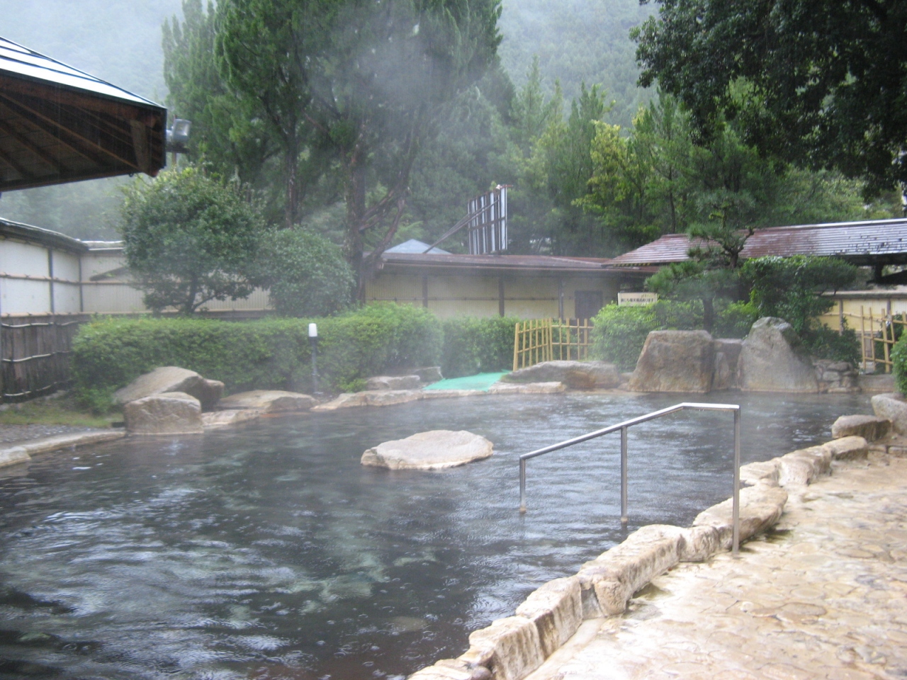 一度に400人も入れるという西日本最大級の大露天風呂がウリの温泉施設です。重曹泉のお湯はぬめり感はあまりなくて、入浴後はさらりとした肌感が特徴のいいお湯でした。大露天風呂を利用した時は他に入浴客がおらず、深い緑の山々を眺めながら、ゆっくり開放的な入浴を楽しめました。家族用露天風呂も一般の温泉旅館に比べたら広めで開放感がありオススメです。