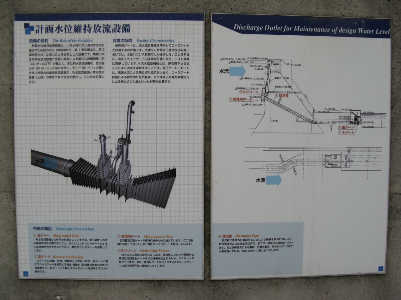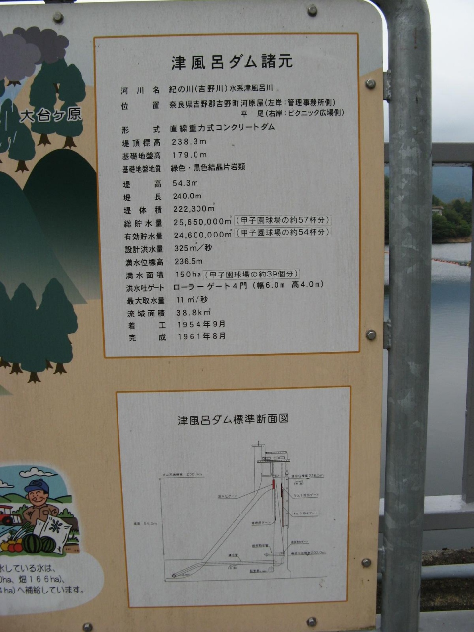 ダム堤体の傍にダムの仕様と図があり、構造が判りやすくて良かったです。