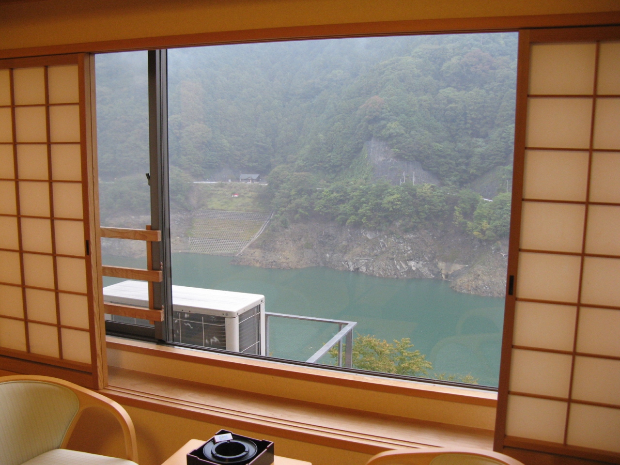 宿泊した部屋は、床の間あり、バストイレ付きの10畳和室で、部屋からは、大滝ダムで造られた人造湖(おおたき龍神湖)が見渡せて静かでゆっくり寛ぐことができました。