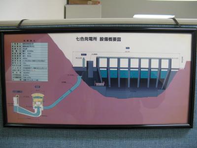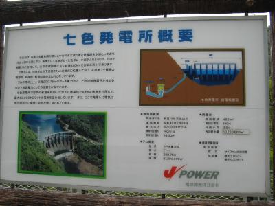 発電を目的とした、堤高111m、堤頂長460mのアーチダムです。下流の“七色ダム”との間で揚水発電を行っていて、上流貯水池の役割を担っています。