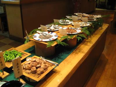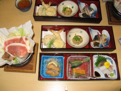 夕食は、イノシシの小鍋があるくらいで海の魚が中心のそれほど特徴のない料理で、美味しく頂きましたが、もう少し地元の食材や名物があればと思いました。
