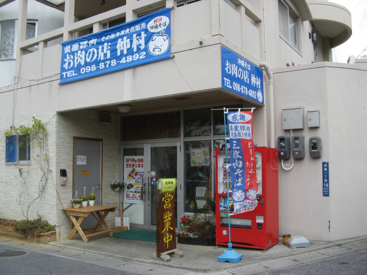 なんでも、こちらは、創業50年という地元では有名なお肉屋さんだそうで、店内に入ると、左側に販売コーナーがあり、豚肉の他、牛肉やヤギ肉など色々な種類のお肉が販売されています。その他販売コーナーには、卵や野菜、豆腐、調味料、蒟蒻など数多くの食品が所狭しと並んでいます。その他のスペースはカウンター席とテーブルが3卓置かれた座敷席になっています。