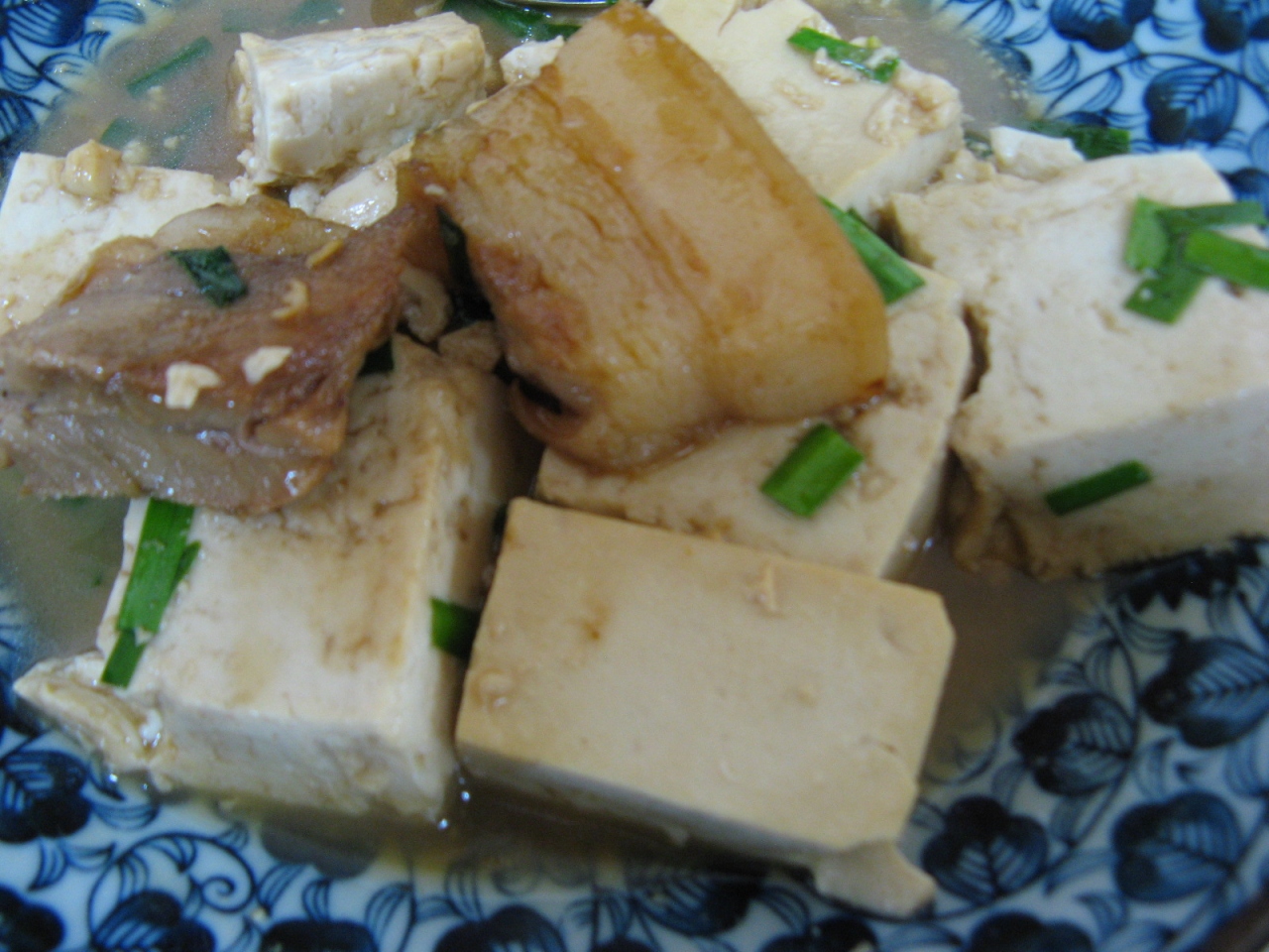 待つことしばし、トレーに乗せられた“豆腐ンブサー”が到着。大量の豆腐に豚肉が乗った大きな皿と、ご飯、おから、小さいそばがセットになっています。「ンブサー」というのは、沖縄で味噌炒め煮のことですが、ここの豆腐ンブサーは、ほとんど味噌の味は感じられないほどの薄味(味噌を使ってない?)です。そして、大量の豆腐は、柔らかい口当たりですが、ほんの少しだけ灰汁のような風味があって私には少し残念でした。