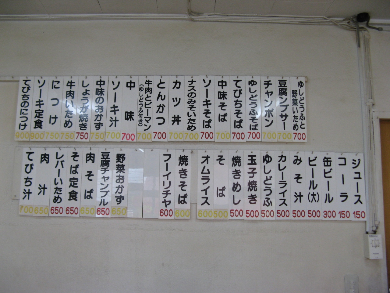 店内はテーブル席と小上がりで30席ぐらいの広さ、沖縄の平均的なそば屋や食堂と比べて、ごちゃごちゃしたところが無く綺麗で気持ちが良い。