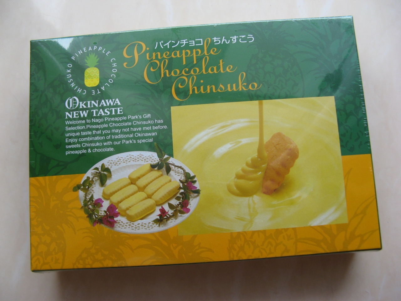 那覇空港の近くにあるお土産屋さんです。“パイナップルハウス”と言うだけあって、パイナップルを使ったワインやお酢、クッキー、チョコレートなどの品ぞろえが豊富です。もちろん、パイナップルを使わない普通のお菓子やキーホルダーなどの小物も売っています。パイナップルをはじめたくさんのお菓子を試食できます。空港近くのレンターカー会社に車を返却する前に立ち寄って、お土産を買うのに便利です。私たちは、“パインチョコちんすこう 702円税込み”を購入しました。