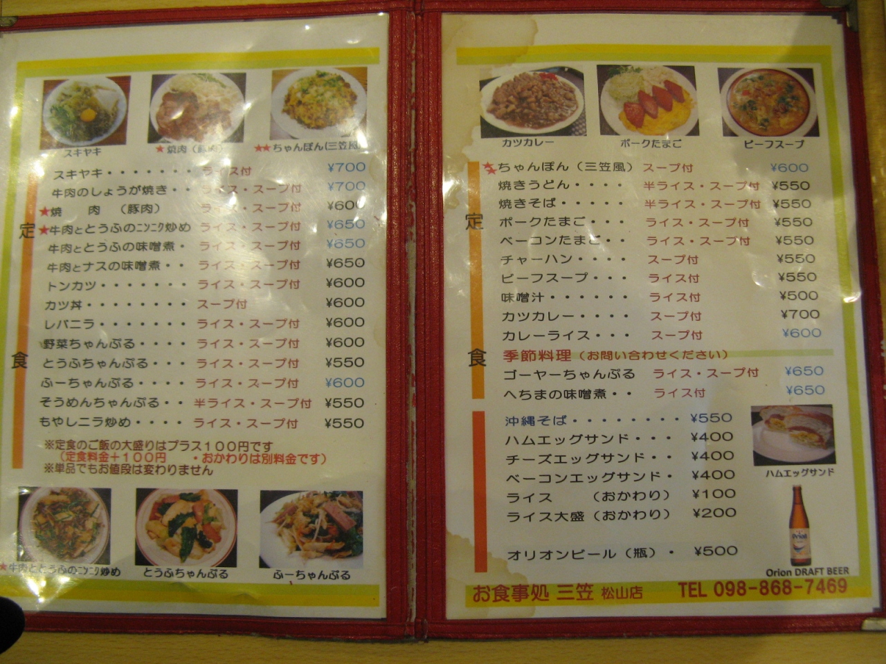 沖縄家庭料理がリーズナブルに食べられるお店です。以前、店舗が国道58号線沿にあったとき何度か訪れたのですが、2016年末に移転しというので訪ねてみました。店舗は那覇の繁華街の松山交差点の近く、以前の店舗から歩いて2~3分の場所にありました。