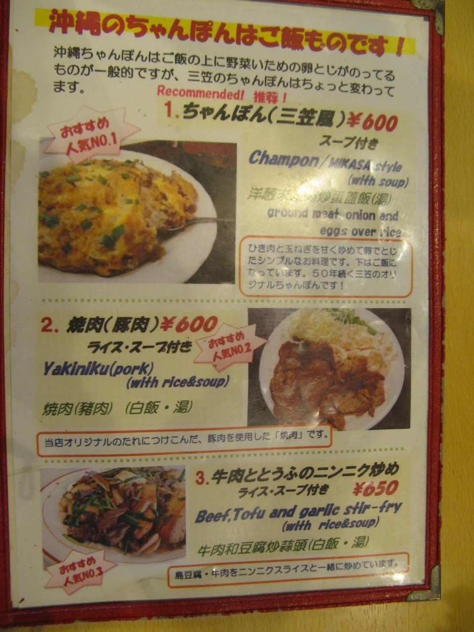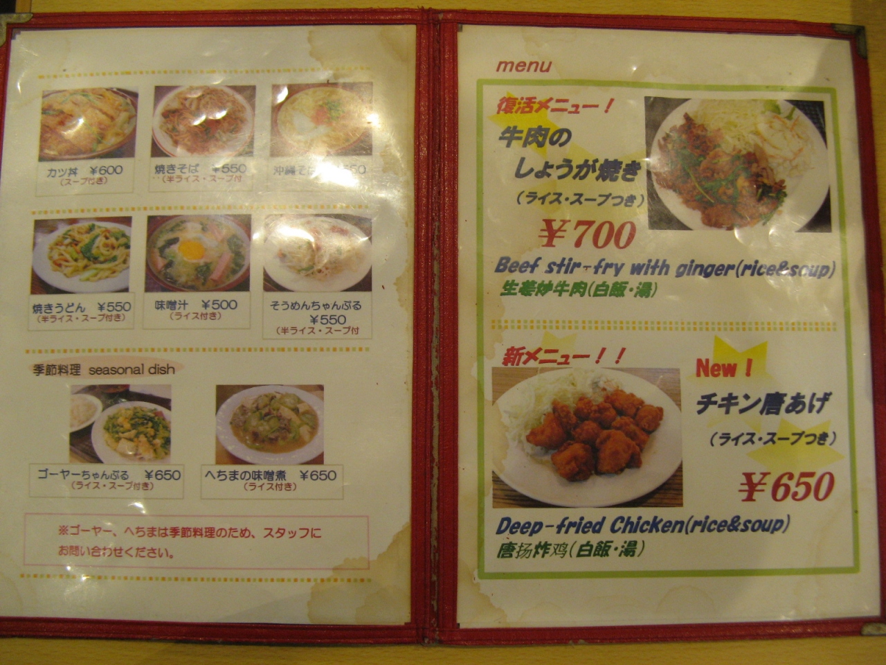 オーダーしたのは、私が“フーチャンプルー 600円”、相方が“スキヤキ 700円”、相方のスキヤキも少しもらって味見してみましたが、フーチャンプルーはしっかりした旨味と塩味、すきやきは少し甘めの美味しい出汁でとどちらも味は以前のままで美味しかったです。