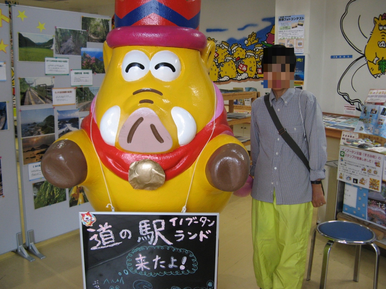 道の駅としては規模が小さく、産直品の売り場も無くてお土産品売り場も狭い。訪れたのは平日だったが昼時なのに観光客らしい人は見られず寂しい風景。情報案内・休息所は付近の観光パンフレットもたくさん置かれていてベンチもあって利用しやすかった。イノブタの王様の人形が置いてあって記念に写真を撮りました。
