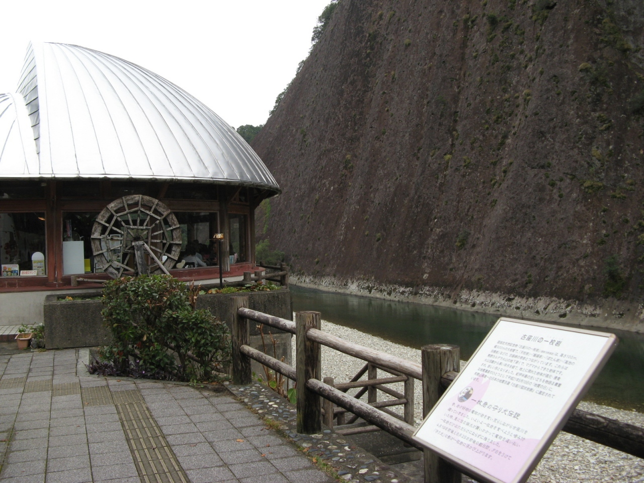 道の駅としては大変小さな施設です。“一枚岩鹿鳴館”という小さな観光物産センターが併設されていて、食事処やお土産販売コーナー、情報コーナーがありますが、駐車場も小さく、観光客も少ないのか道の駅定番の農産物の産直品売り場はありませんでした。