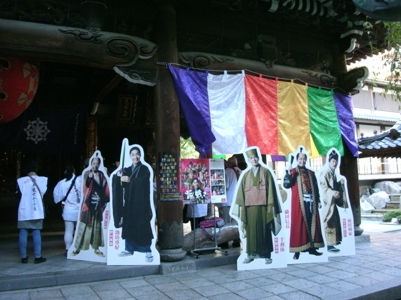 西国三十三カ所(第18番札所)の巡礼者や修学旅行生、外国人観光客などたくさんの人々がお参りされていました。6月に公開される映画「花戦さ」の物語の舞台となったことから、主要キャストの等身大のパネル写真がお堂の前に並ぶなど、訪れたときは少し雑然とした雰囲気がありましたが、立派なお堂や十六羅漢の像などがビルに囲まれれているアンマッチな風景に面白さを感じました。