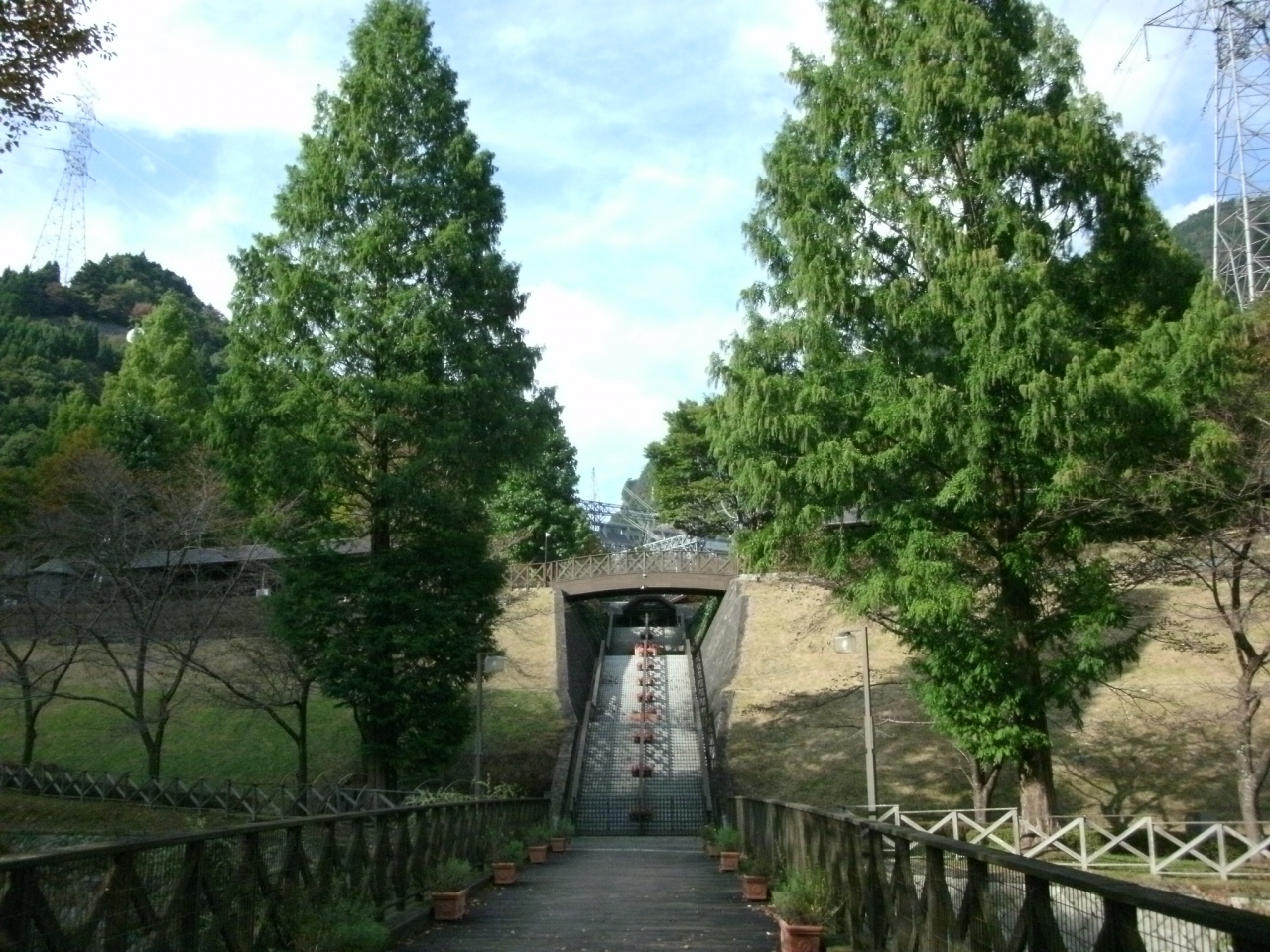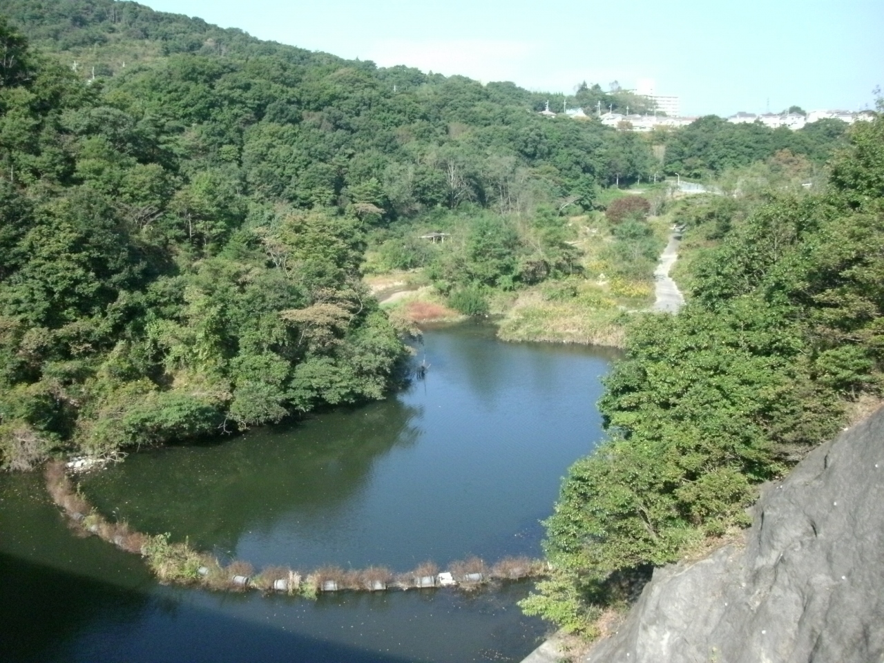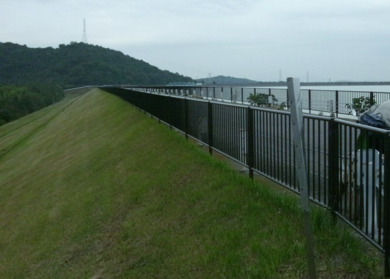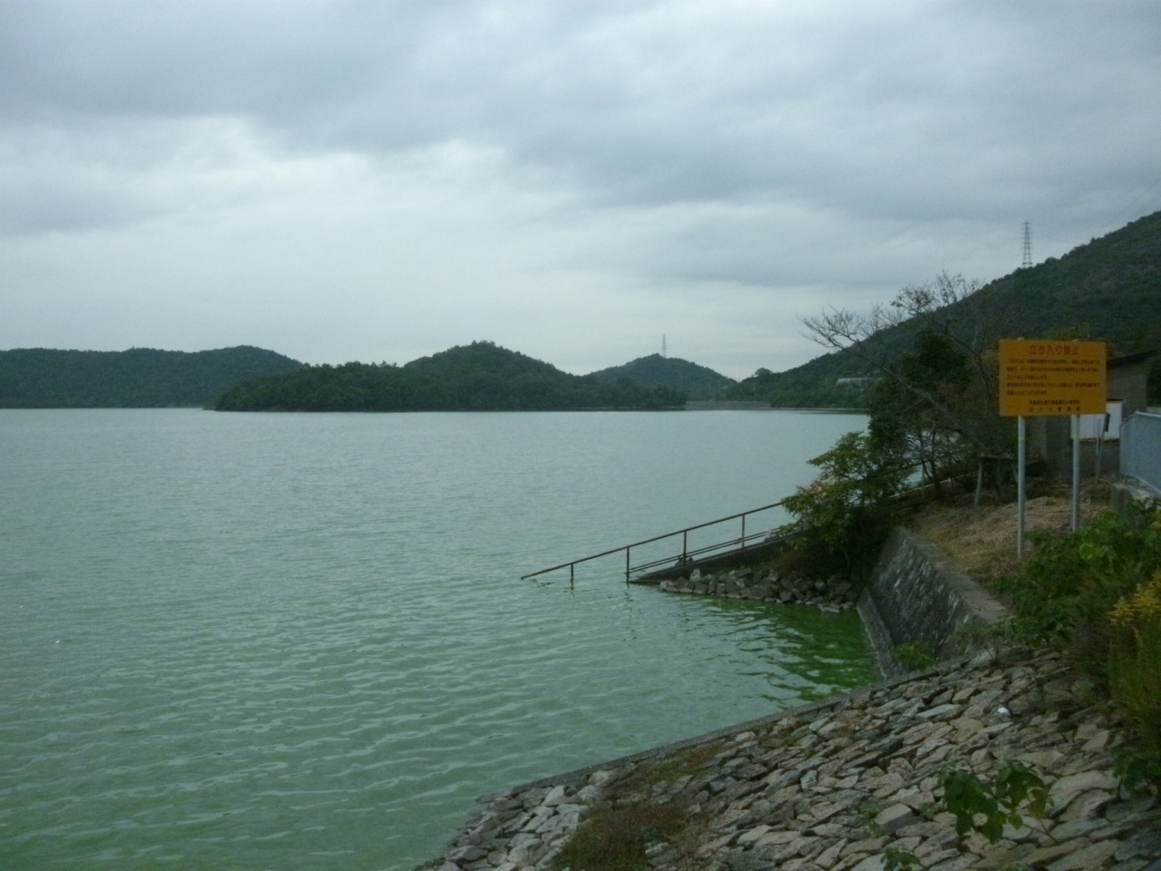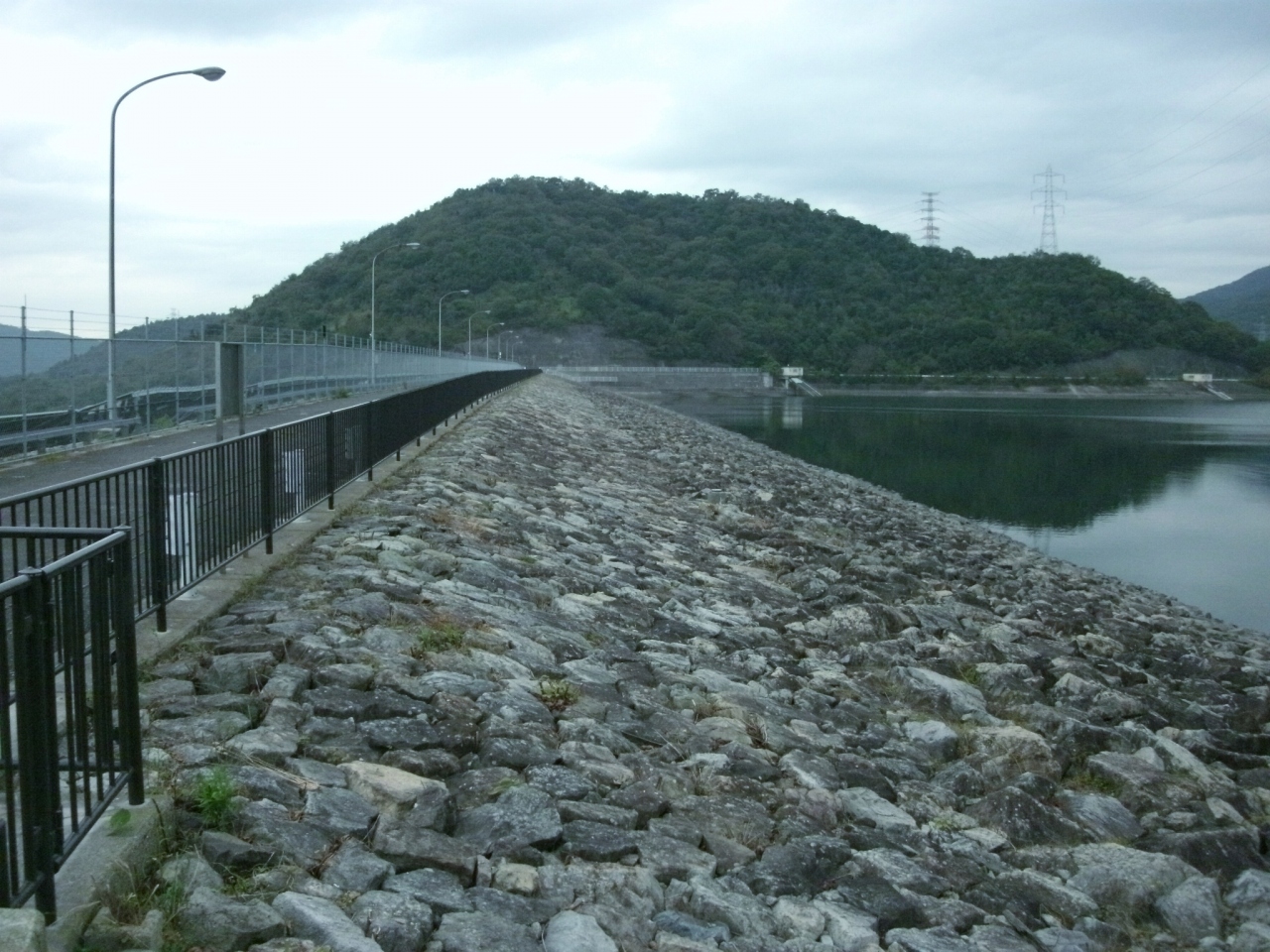 加古川工業用水の安定供給を目的として建設されたロックフィル式のダムです。第1から第3まで3ヶ所のダムがありますが、最も大きい第1ダムでも堤高が32.6m、堤頂長が357.4mで長さは長いが高さが低いので、一見、ダムのような感じはしませんでした。ダムの斜面には太陽光発電パネルが沢山設けられていました。ダム湖周辺には所どころにベンチが設けられていて、ダム湖を観ながら休憩するのに良かったです。