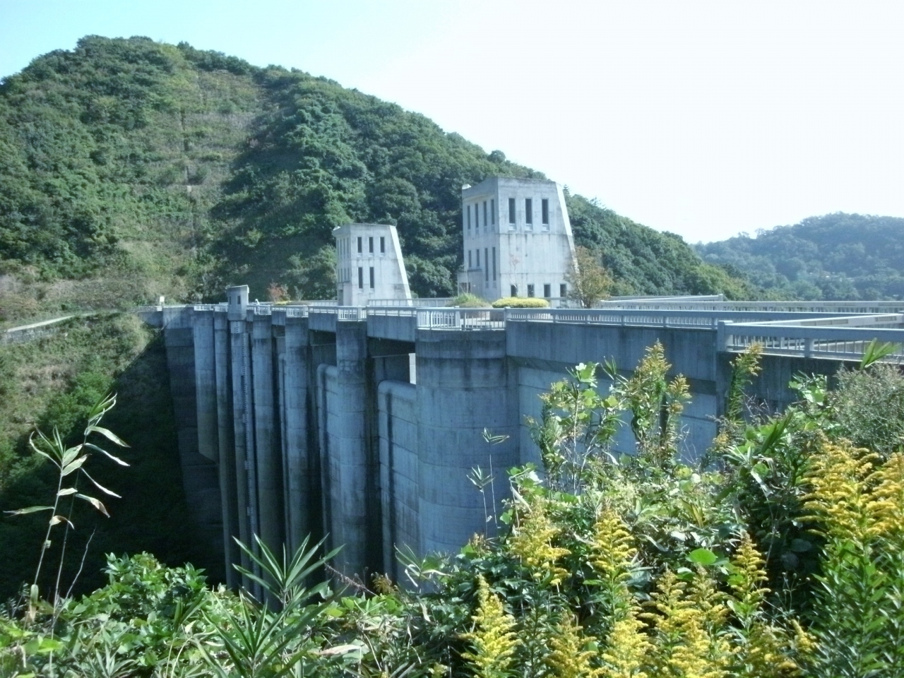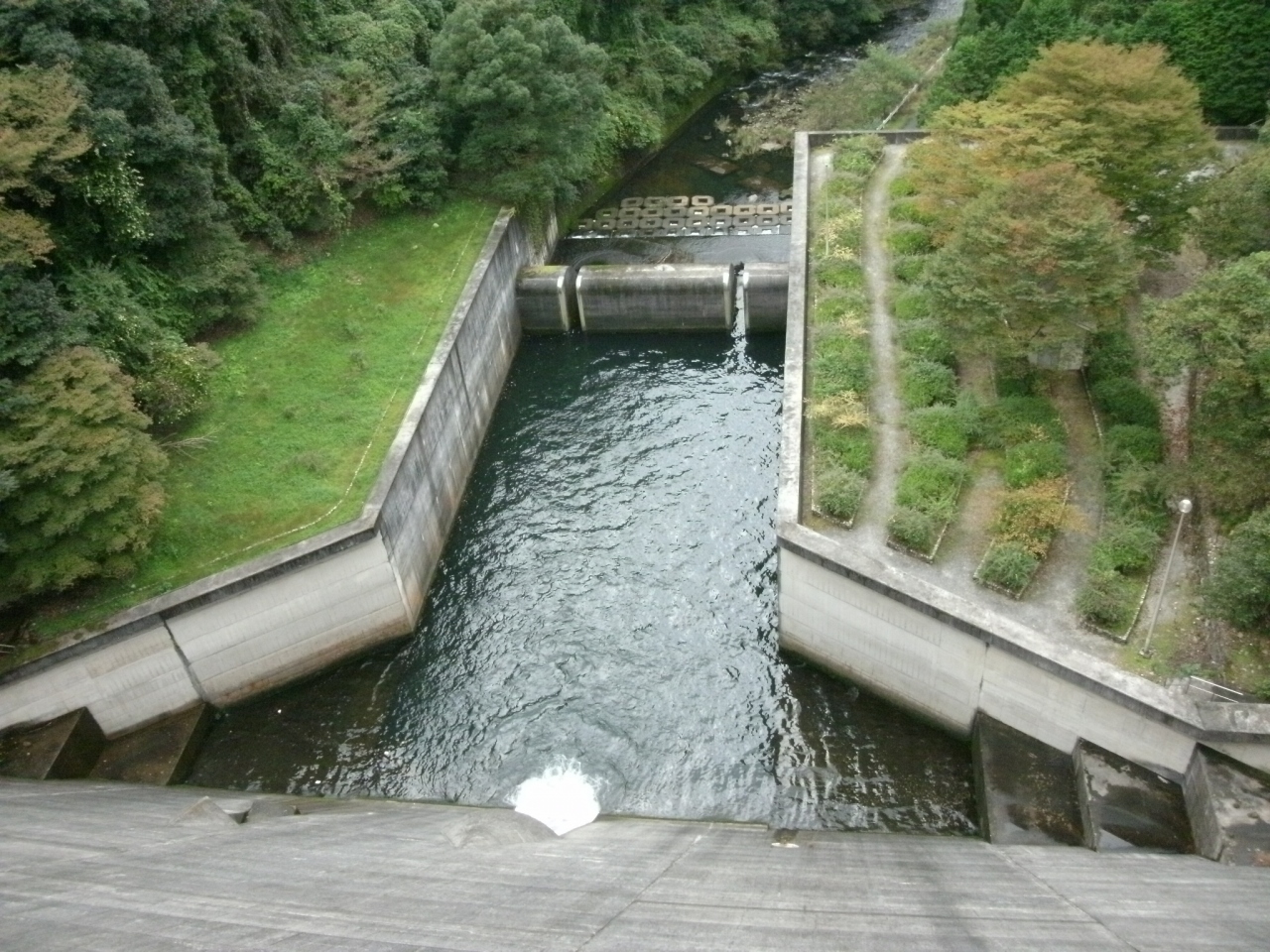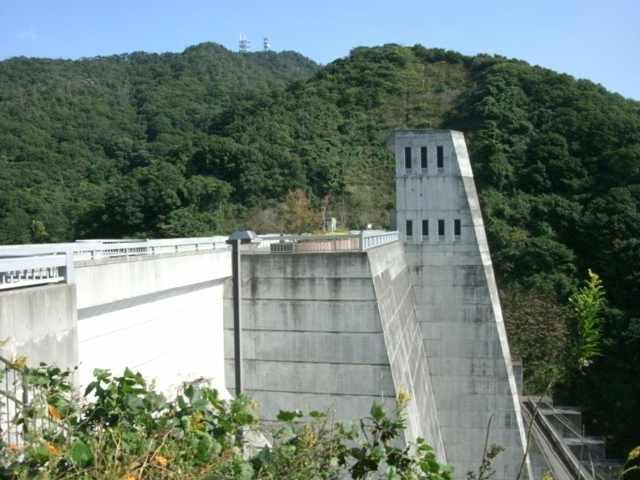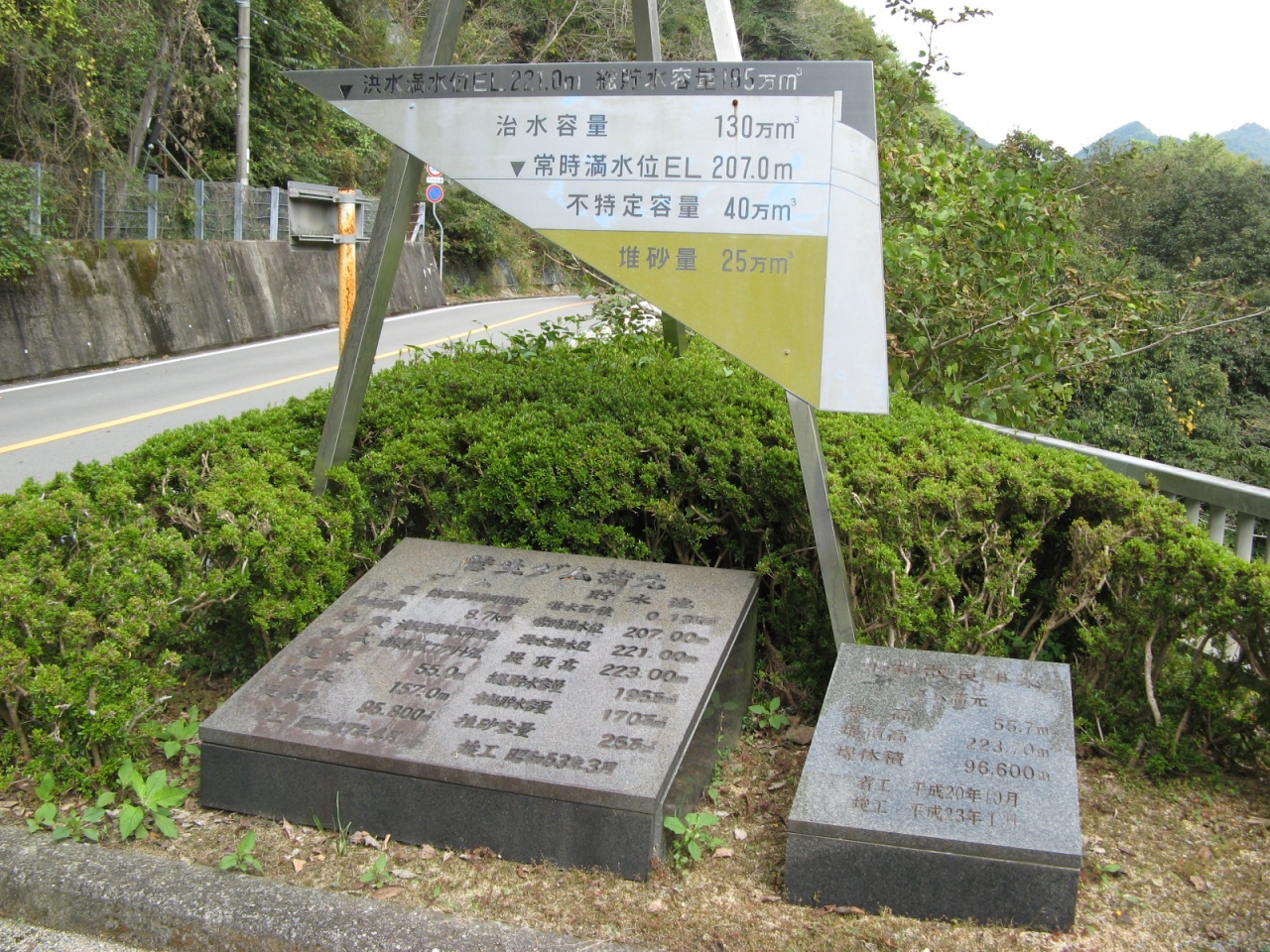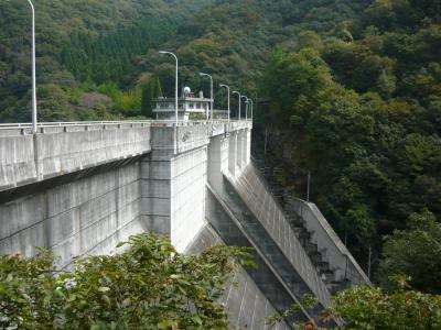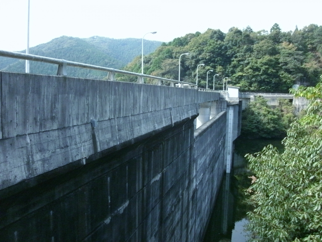洪水調節を目的とした、堤高33.8m、堤頂長127mの重力式コンクリートダムで治水専用のダムということもあって、訪れたときは水量は少なかった。