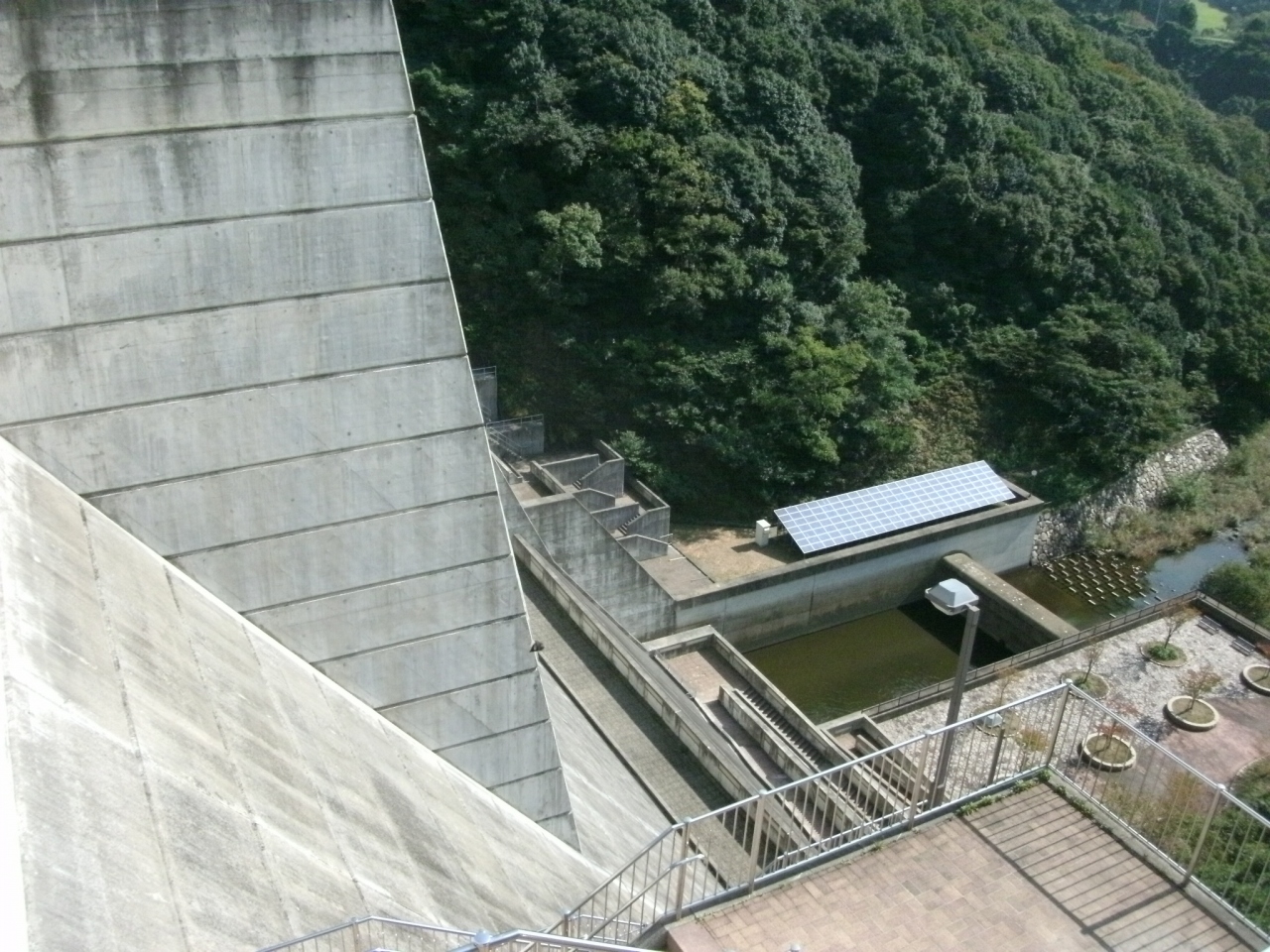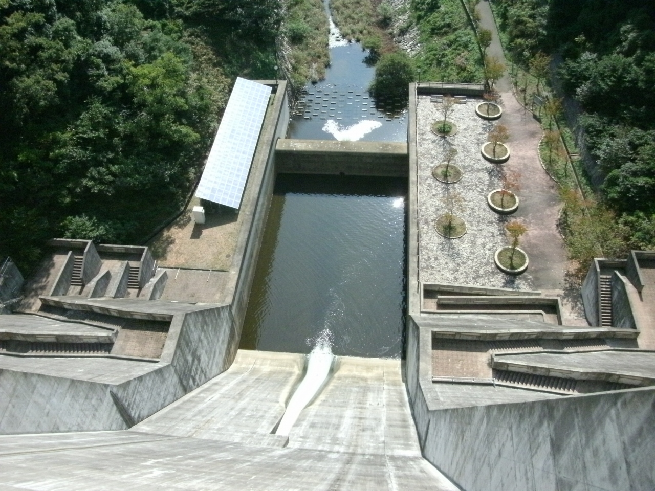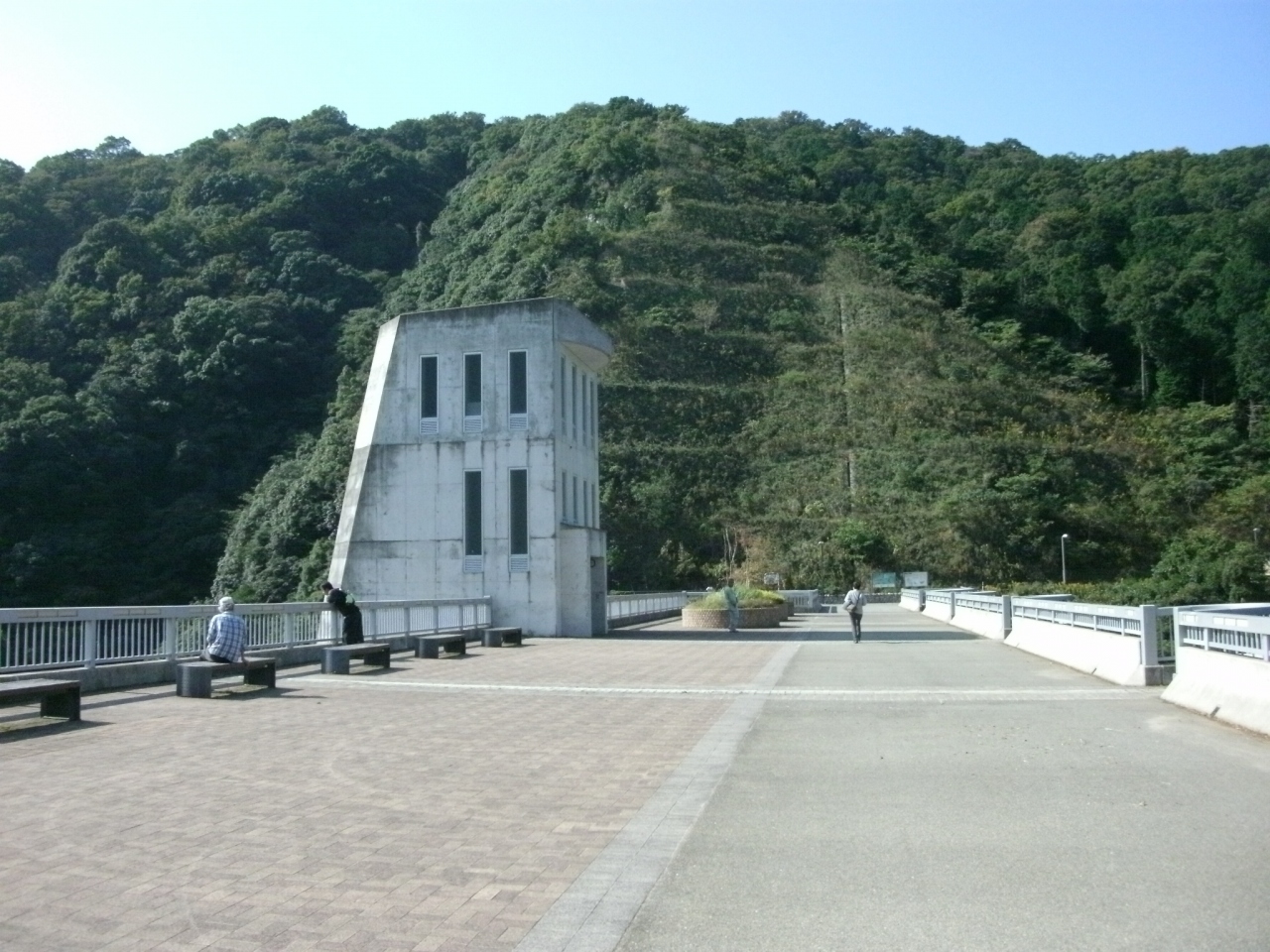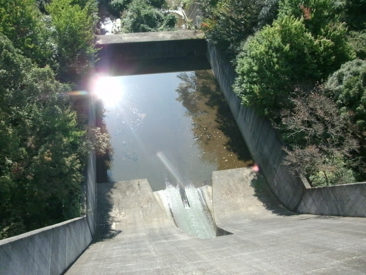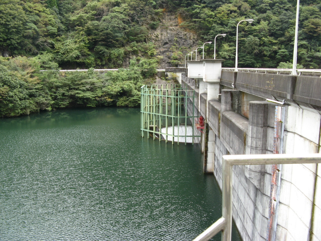 洪水調節を目的とした、堤高33.8m、堤頂長127mの重力式コンクリートダムで治水専用のダムということもあって、訪れたときは水量は少なかった。