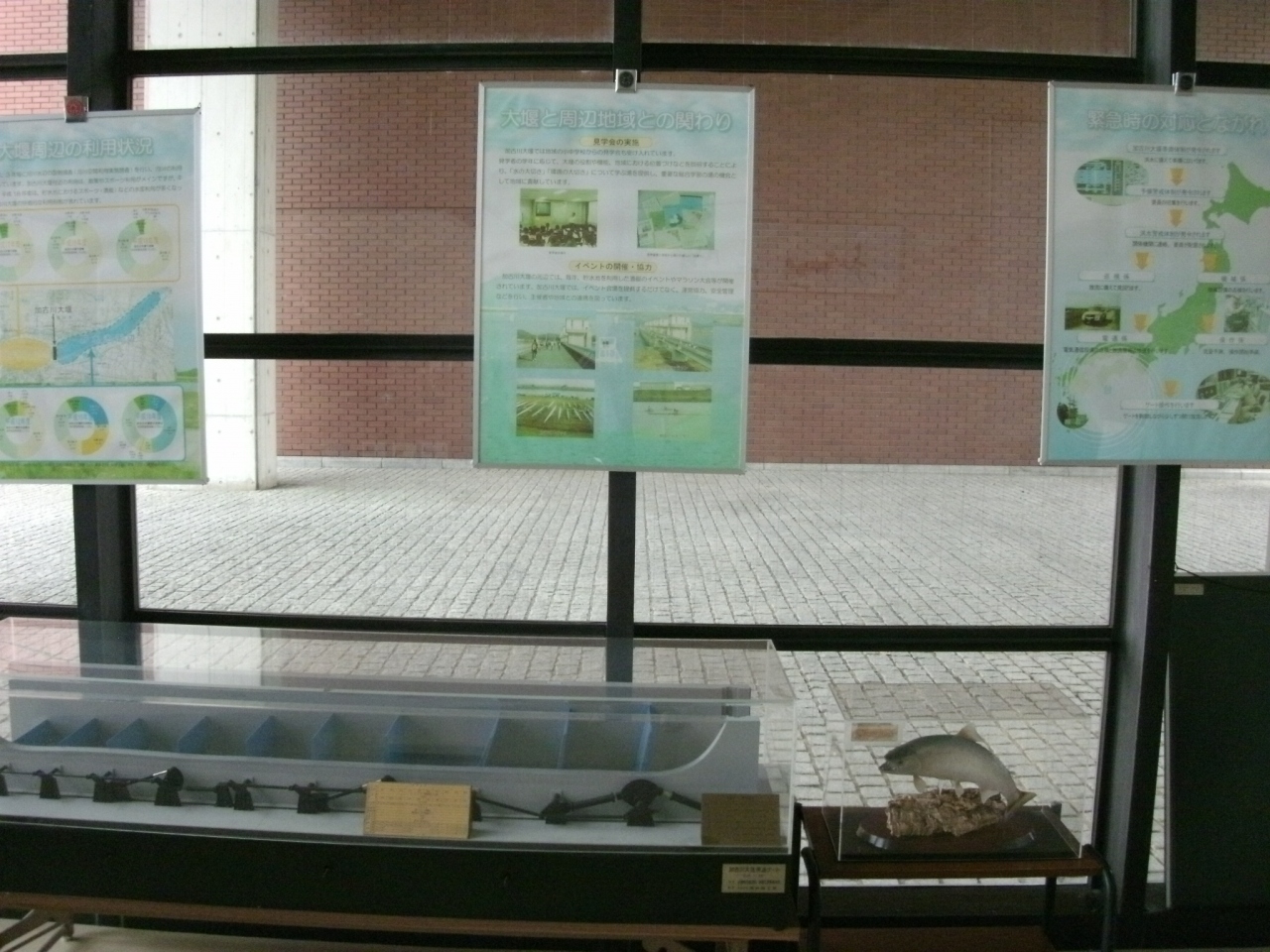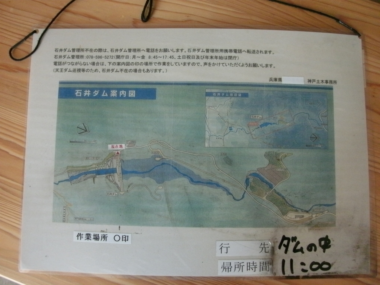 ダム右岸に立派な管理所があり、訪問した時は所員の方が巡回中で行き先と帰所時間が記された表示板(添付写真を参照下さい)が管理所入り口にあって、ダム周辺を観て回った後、帰所時間にお伺いしてダムカードとダムの仕様や構造などが記載された立派なパンフレットを頂くことができました。なお、管理所には、展示室があって、ダムの役割や周辺の自然について学ぶことができました。