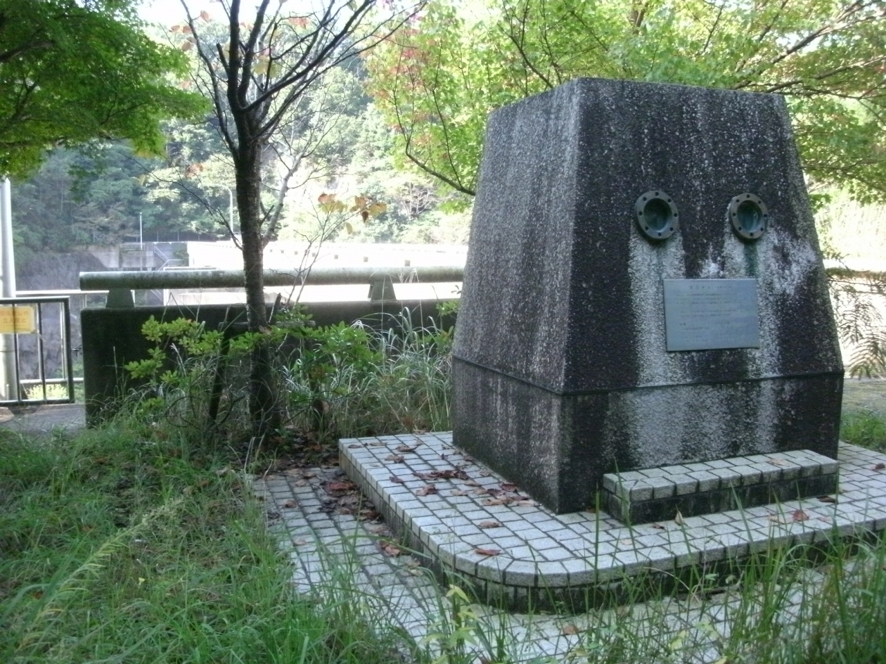 ダムサイト右岸に管理所があり、その傍に駐車場やトイレ、ダムの説明板、タイムカプセルがあります。タイムカプセルの説明板には、『このダムに込められた多くの人々の熱い思いと、ダム建設に関係する多くの資料をタイムカプセルに納め「未来の手紙」として後世の人達に送ります』とありました。兵庫県下のダムには数か所、この様なタイムカプセルを観ることができますが、全国的には珍しいかも。