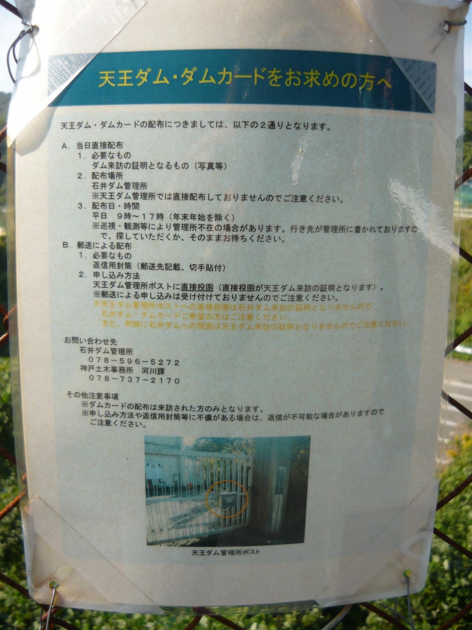管理所の入り口にダムカード配布についての表示(添付写真を参照ください)があり、それに従って、“石井ダム管理所”に出向いてダムカードを頂くことができました。- 旅行時期