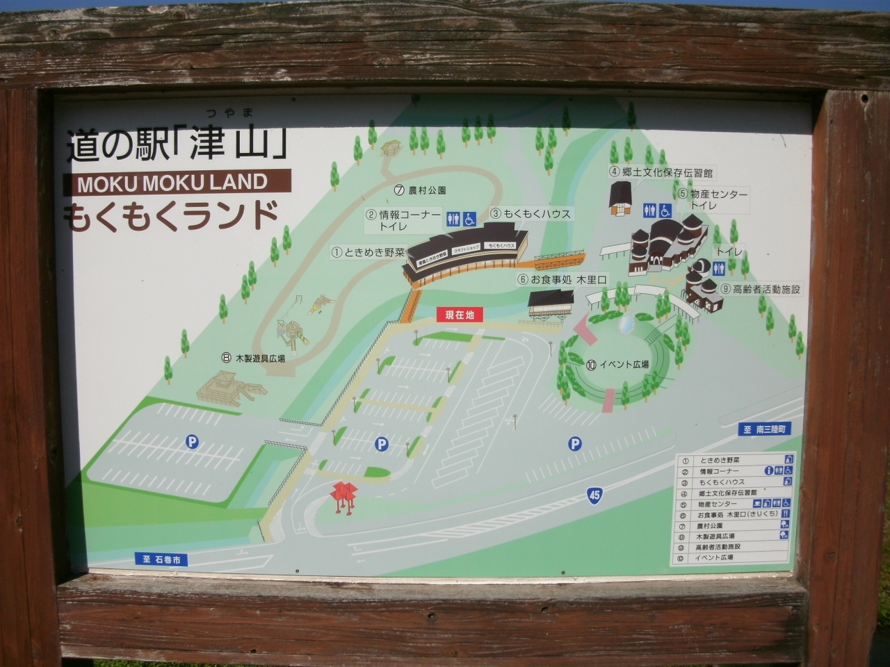 “もくもく”は、“木”のことらしく、広い敷地にログハウス風の造りの建物や、木製遊具をそろえた広場、津山町郷土文化保存伝承館など木工に関する施設が並んでいました。