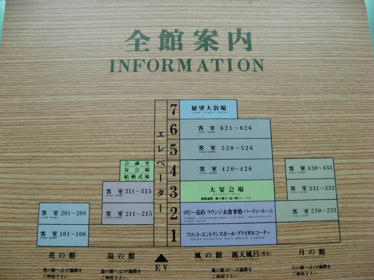 湯郷温泉街の中ほどの高台にあり、眺望もよく温泉街を散策するのに便利な位置にありました。湯郷にあっては比較的大きなホテルで、建物は年季が入っていそうでしたが綺麗に管理されていました。滝が流れる広いロビーでは、ソフトドリンクが無料で飲み放題でした。