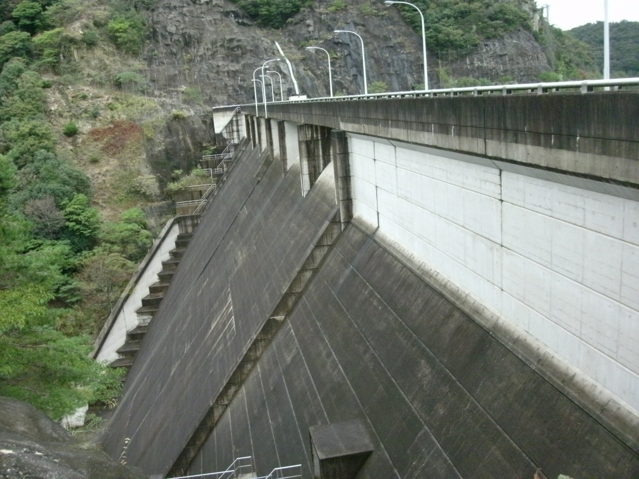 竣工が1989年と言う自由越流方式のシンプルな構造のダムで、ダム堤体上は人は通ることができますが、車の通行は不可です。