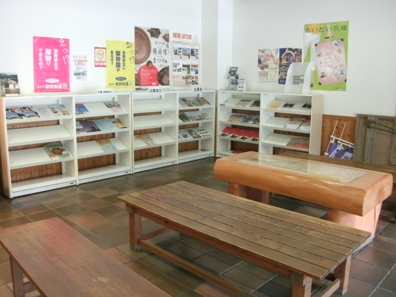 中国自動車道の佐用ICから車で10分足らず、国道373号線沿いにあります。道の駅としては規模は小さめで、野菜などの産直売り場やお土産売り場も品ぞろえはもう一つ。情報コーナーは、大きめのテーブルとベンチが置かれていて休息するのに良かったです。EV車用の急速充電器がありました。