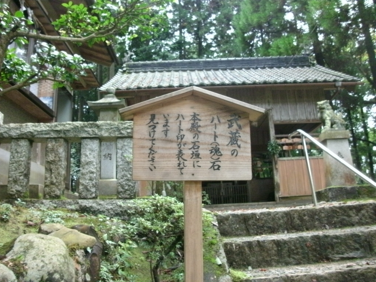 社殿の右面の石垣に、武蔵のハート(魂)石と呼ばれる、自然にハートマークのついた石がありますした。よく見ないと見落としそうなものなので、参拝時に気をつけて探してみてください。- 旅行時期