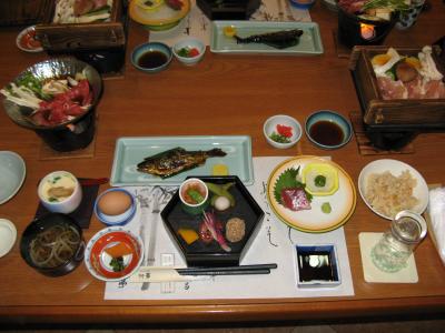 夕食は食事処で頂いたが、岡山産の牛肉や鶏肉、野菜などをふんだんに使っていて好感が持てた。特に、山女魚の甘露煮は美味しかった。