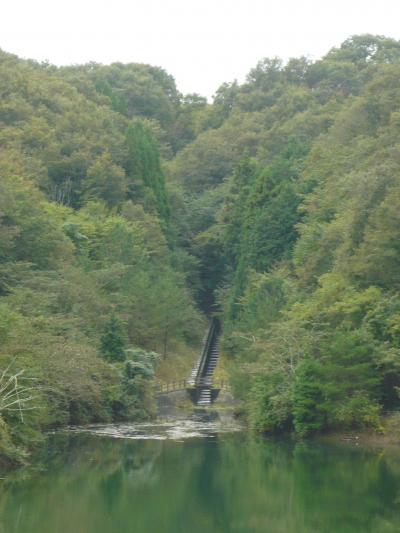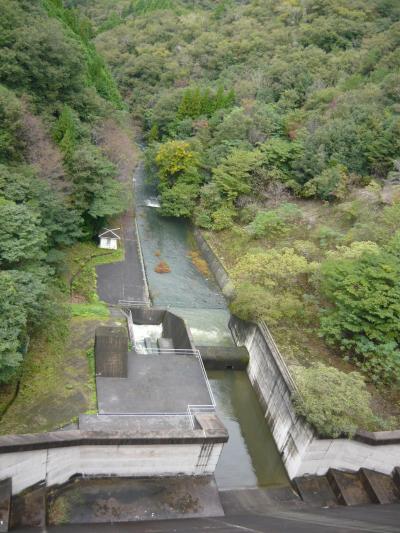 竣工が1991年と言う比較的新しいダムで、自由越流方式のシンプルな構造で、ダム堤体上は、車も通行が可能です。小規模なダムで高さも低く、ダム堤体上から下流側を覗いてもそれほど迫力はありませんが、少し紅葉には早かったが綺麗な渓谷を観ることができました。