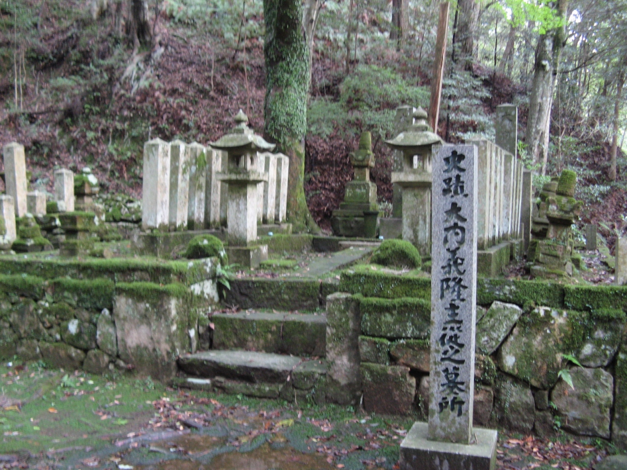 長門湯本温泉街から歩いて10分余り、県道34号線沿い大寧寺の境内に「大内義隆公墓所 大内義隆主従の墓所」があります。