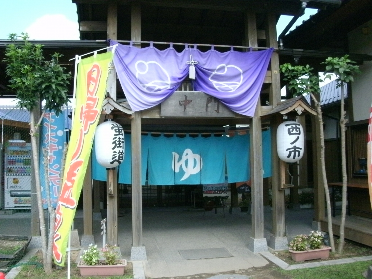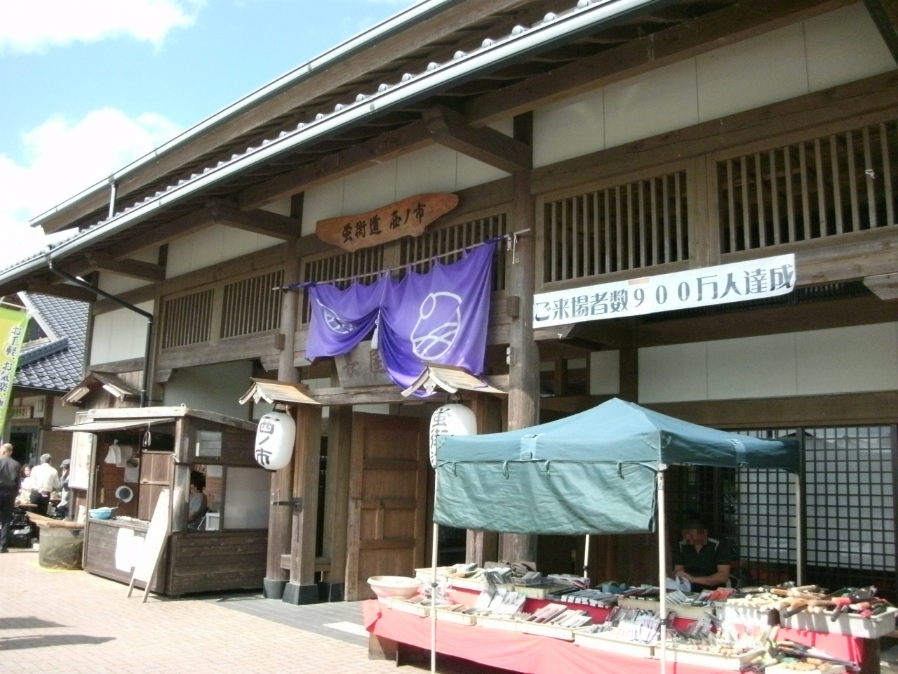 道の駅としては規模が大きく、祭り広場という名前の広場を中心に木造瓦葺きの建物が並ぶ昔の農村をイメージしたような道の駅で、広場には火の見櫓のようなものまであり、その奥には“蛍の湯”という日帰り温泉施設もありました。