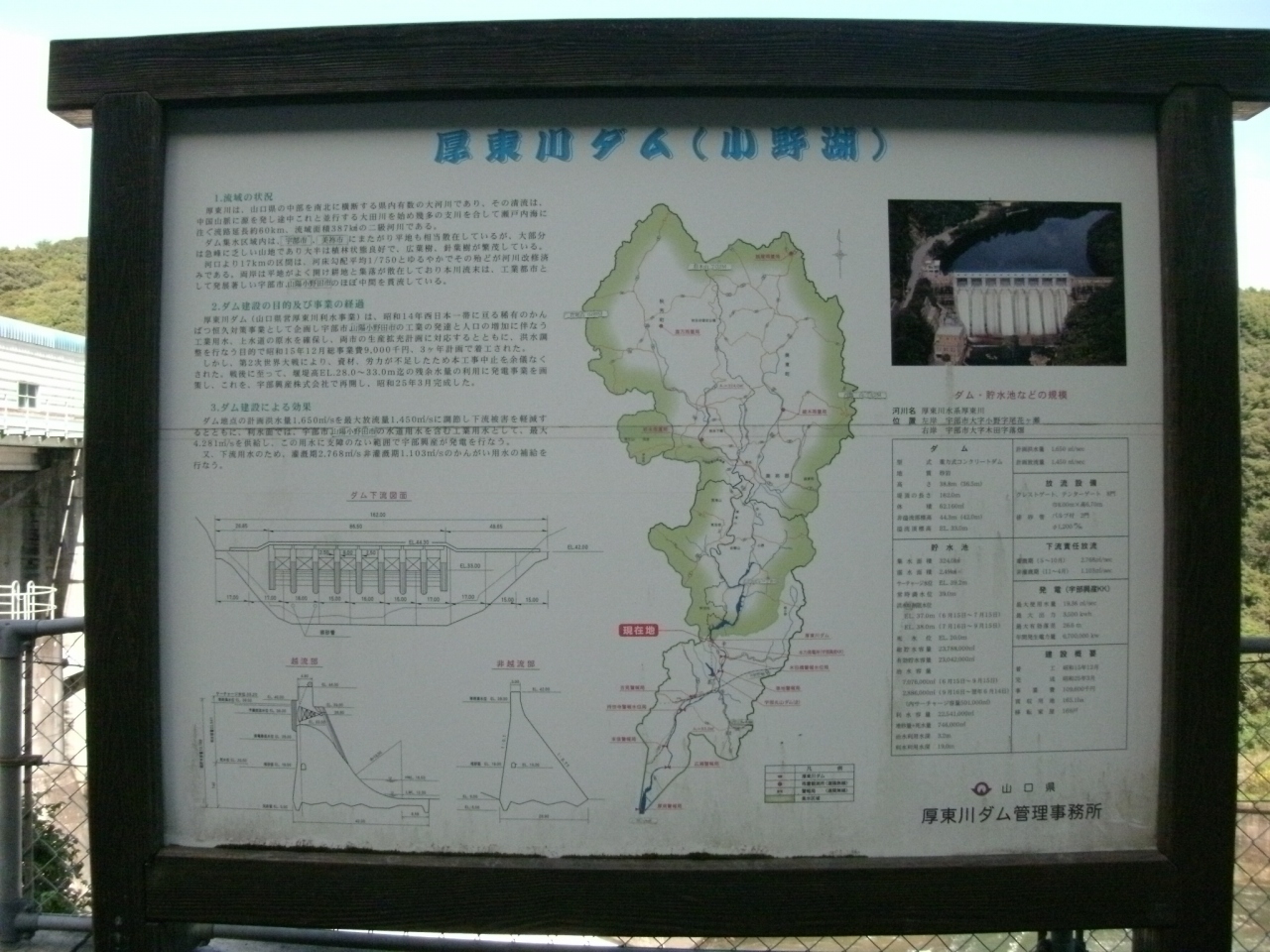 ダムサイト右岸に管理所があり、そばにダムの仕様や構造を表した説明板があります。駐車場はありますが、トイレはありません。