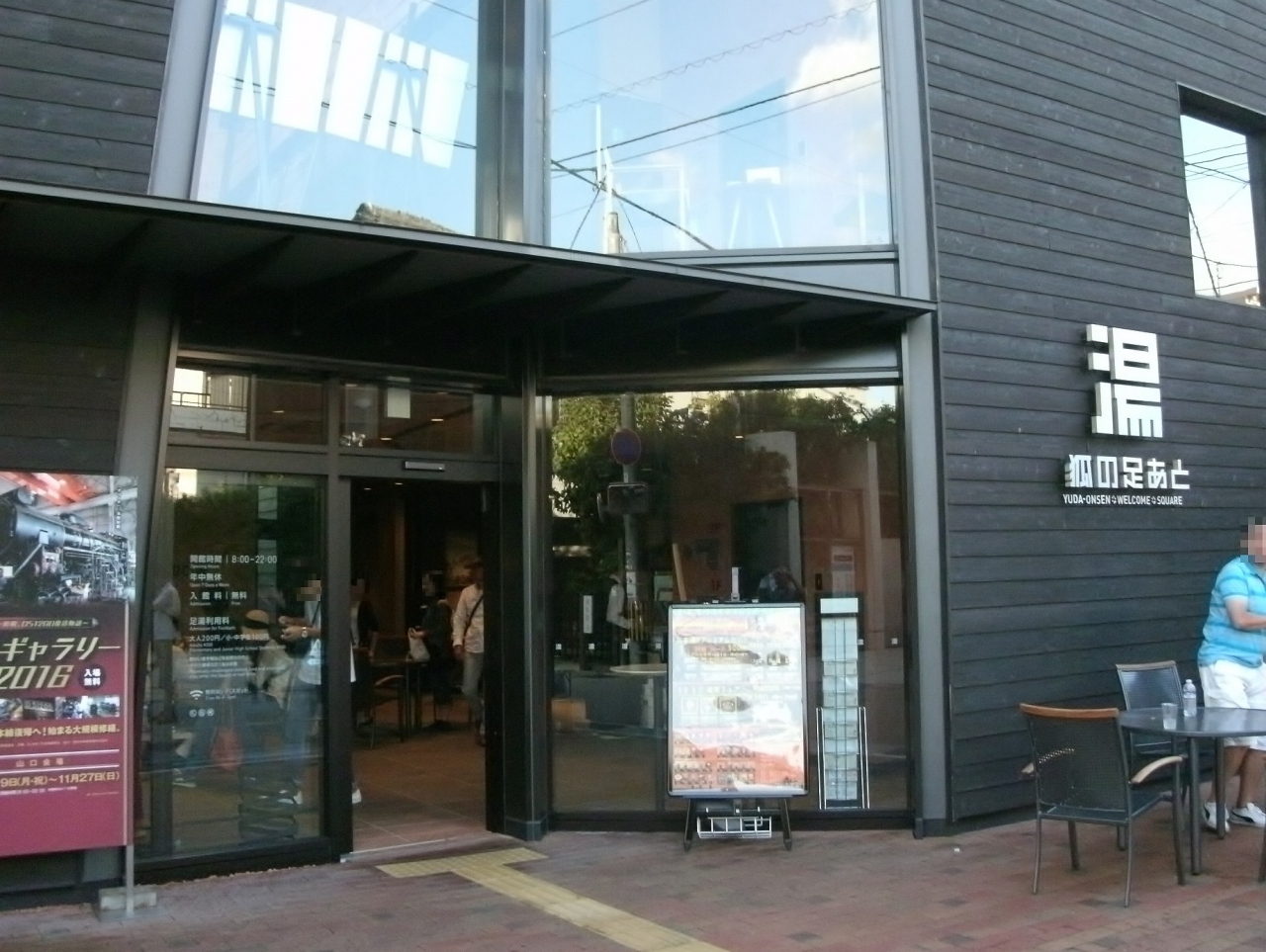 湯田温泉駅より歩いて10分足らずのところにあります。向かいにある“中原中也記念館”を訪れたときに、たくさんの人が出入りしているのに気が付いて立ち寄って見ました。館内には湯田温泉の観光スポットや食べ歩きの情報を収集できるコーナーやカフェ、有料ですが足湯もありました。