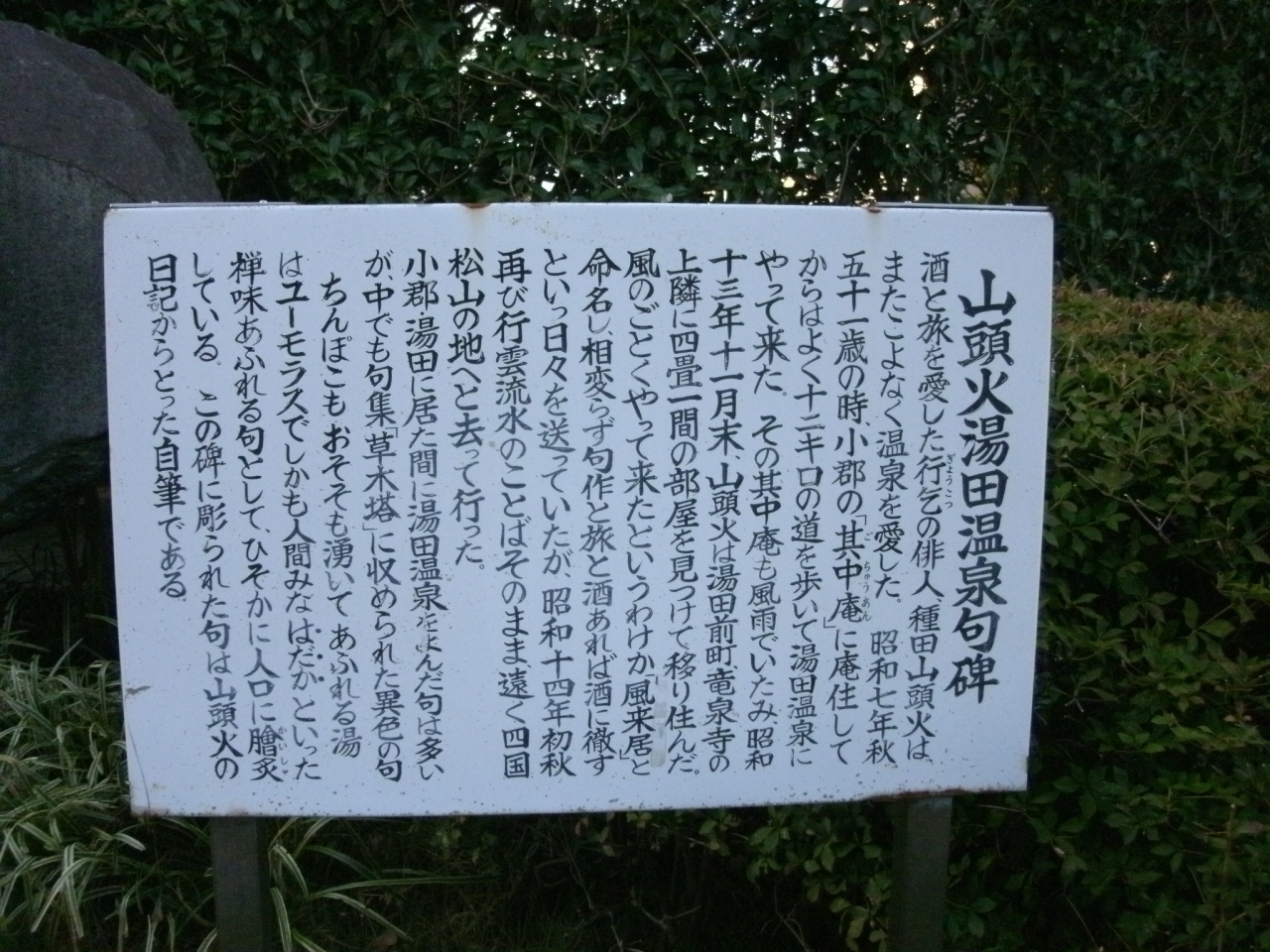 種田山頭火は湯田温泉が気に入っていたそうで、温泉街を歩くと山頭火に関する観光スポットが散見されます。