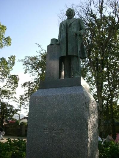 湯田温泉駅より歩いて5分足らず、“井上公園”内に明治維新の元勲の一人である「井上馨像」があります。