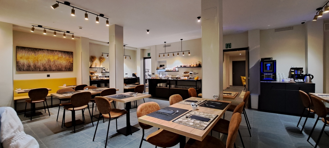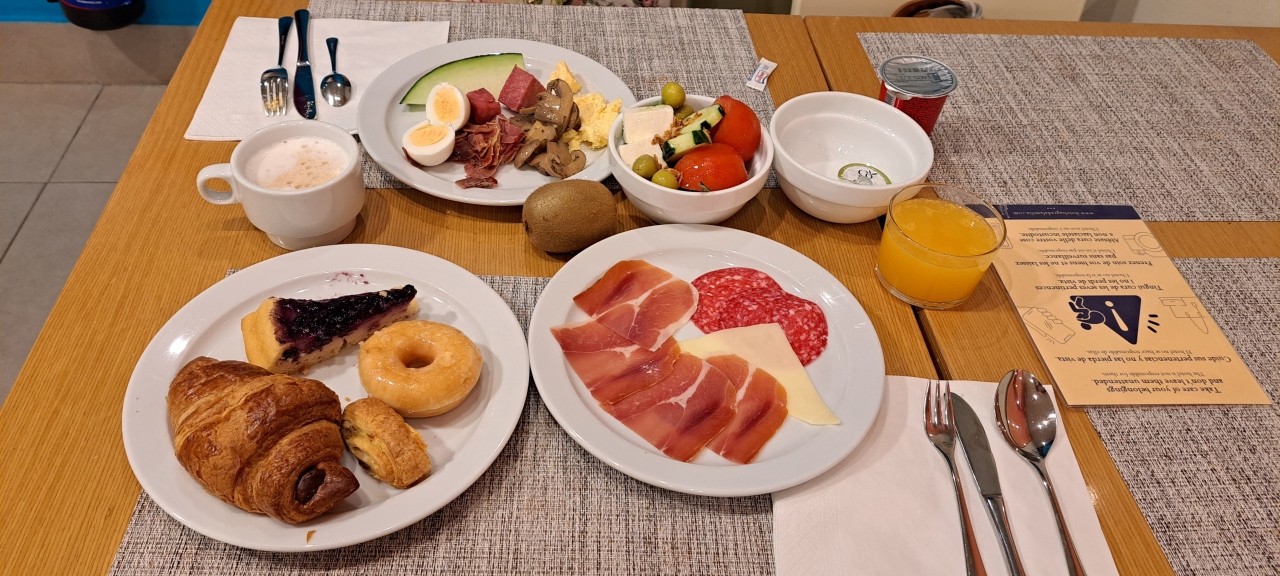 朝食は温かい物はそんなに多くありませんがクリームチーズ取り放題でパンコントマテも食べられます。荷物を預かってもらおうとしたら2階のコインロッカーを勧められて、スーツケース1つで4.5ユーロ。取り出すときに更に1ユーロかかりました。- 旅行時期