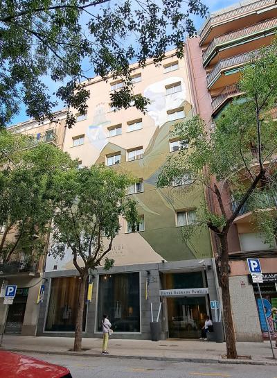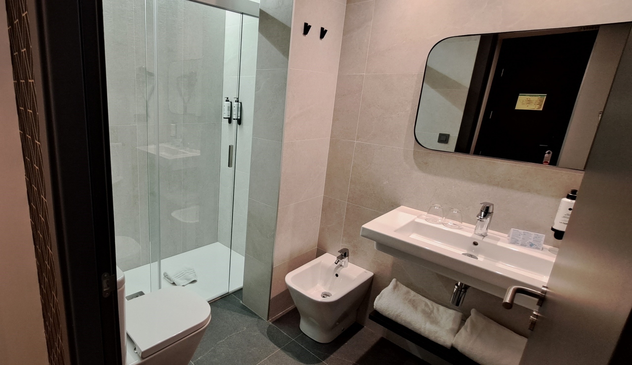 サグラダファミリアにも徒歩5分ほど。メトロの駅も同様です。部屋はそんなに広くありません。バスタブはありませんがシャワーの湯量も温度も申し分ありません。