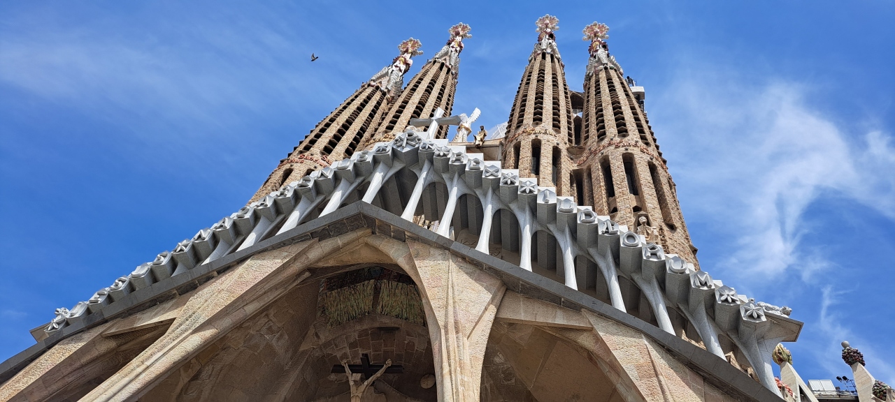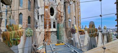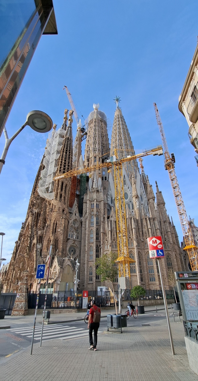 今回はグエル公園とセットのツアーだったので半日でしたが、サグラダファミリアだけなら2時間といったところでしょうか。予約をするのがベストです。天井もまだ無い頃に訪れましたがその頃に比べると人の数が半端ないです。周りに露店もたくさん出ていてメトロの駅もあるのでスリにも注意です。入場に際してはセキュリティチェックが大変厳しくなっていてベルトやサングラスまで外すよう指示がありました。