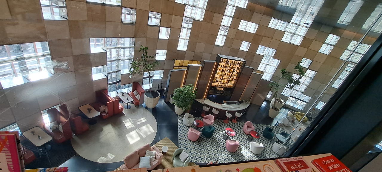 入場料は大人1人18ユーロ、スカイツリーと同じくらいでしょうか。チケットは並ばなくてもすんなりと買えました。チケット売り場は地下にあり、バルセロナの海洋生物や風や雲がスクリーンに映し出され、椅子もあるので休憩にもなります。そこからエレベーターで一気に30階まで上がり360度のパノラマを見ることが出来ます。