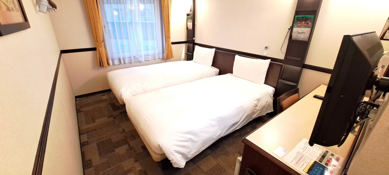 スーパーホテルは他の所でも何度か利用していますが、ここでは二段ベッドの上はベッドメイキングされて無く天井に頭がつきそうなところでセットするのは大変でした。