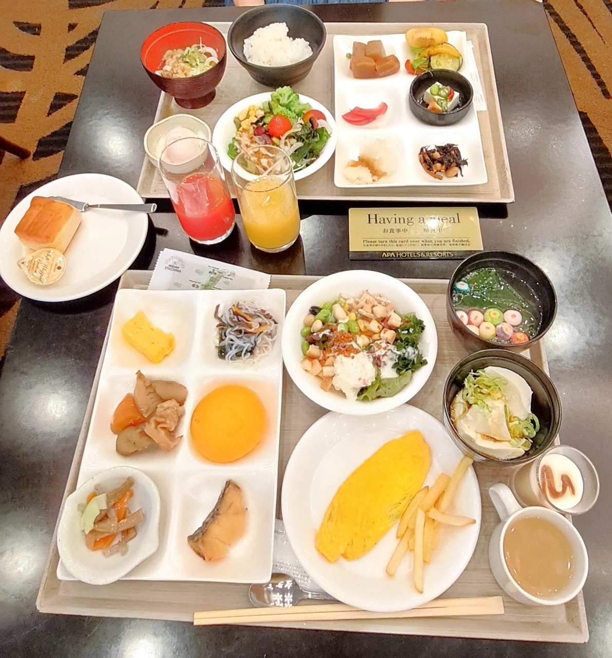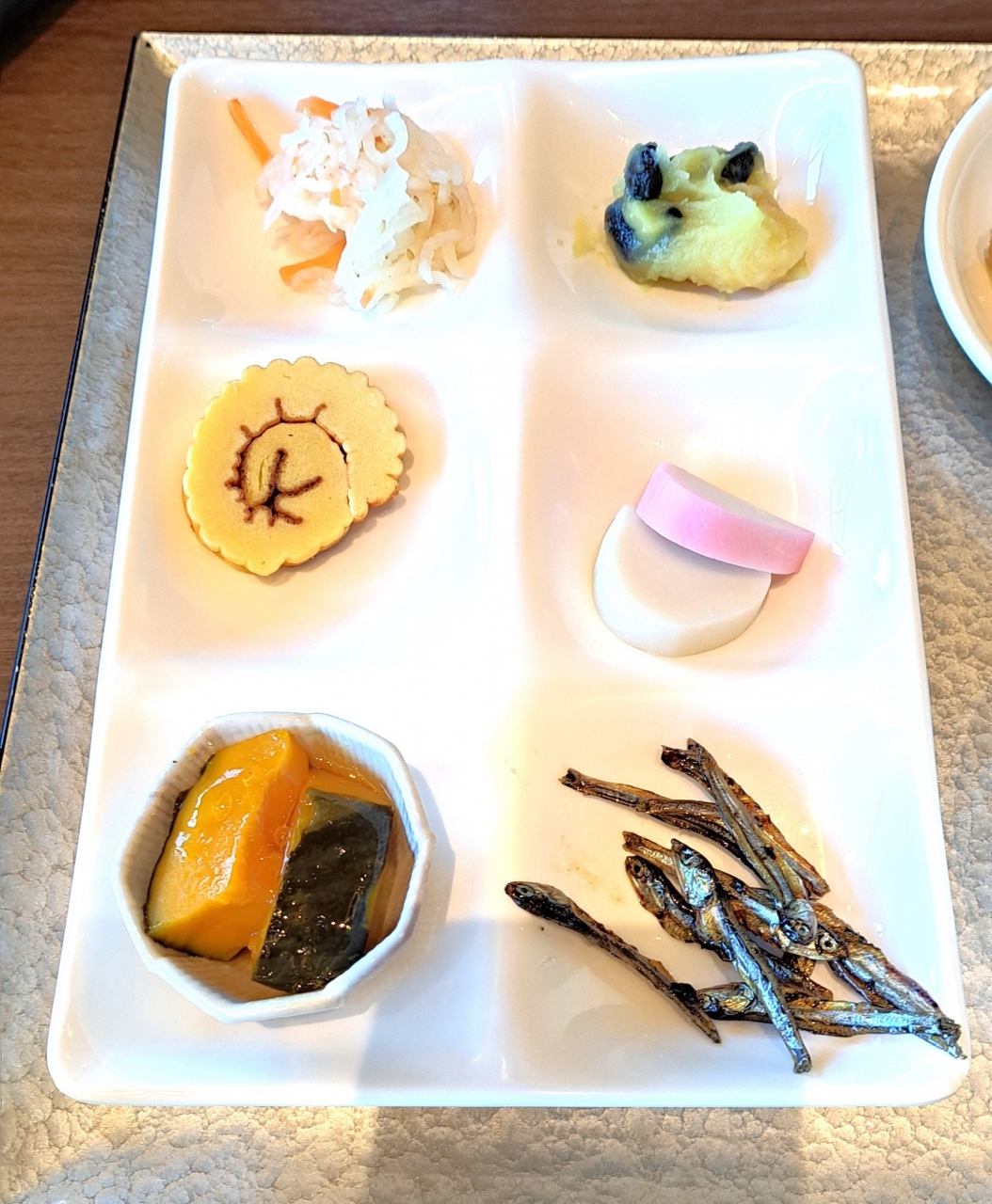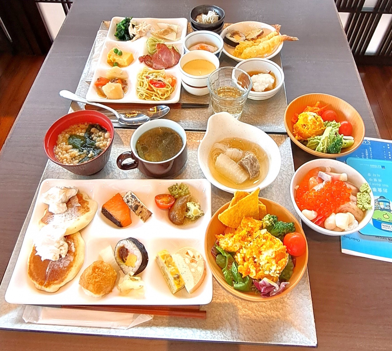 このホテルの売りは絶景と大浴場と朝食だと思います。朝食の海鮮コーナーは半端なくてマグロ、たい、ぶり、小柱、甘エビ、サーモン、いくらがこれでもかと用意されていました。天ぷらやパスタ、おでん……と夕食かと思うほどです。『料理長のお節介』なるリーフレットも渡されメニュー全部と豆知識も載っていてよかったです。
