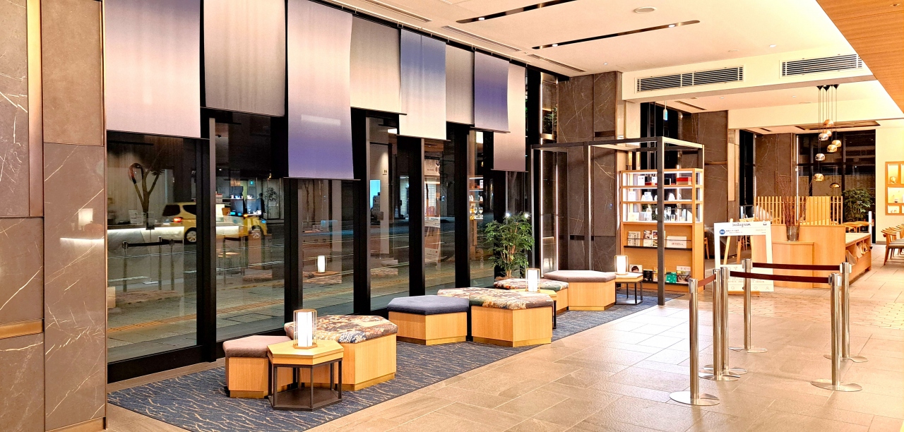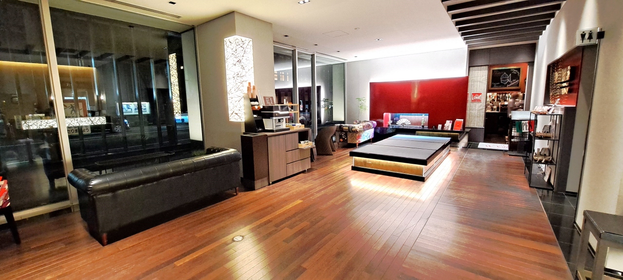 フロントフロアは板張りで落ち着いた感じです。武蔵が辻に近く特に近江町市場は便利です。