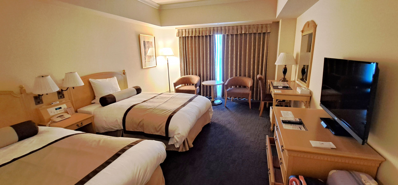 お部屋もベッド下に荷物が置け、学校の教室にあるようなアナログの見やすい時計があり、あまりホテルらしくないものの時間を気にする私達にとってはありがたかったです。
