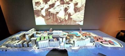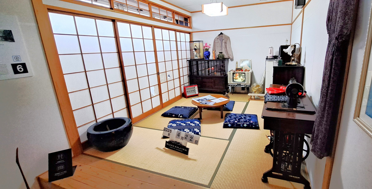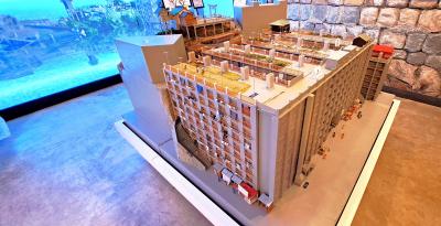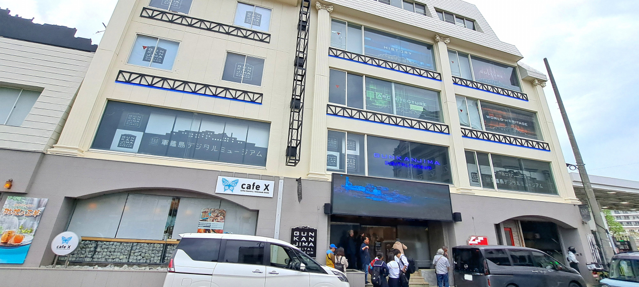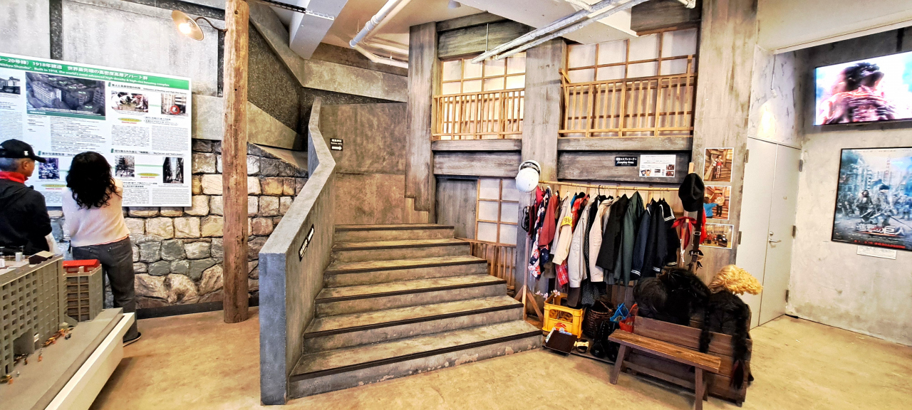 1階はミュージアムショップやカフェが併設されています。展示は2階3階4階になります。タッチパネルでクイズ方式で軍艦島を知り、至る所にミニシアターや模型があります。VRはツアーでも入れない建物の中を飛ぶように体験できとても楽しめました。案内してくれる人の中には軍艦島に実際住んでいた人がいらしてこの島のことを知ってもらうのが嬉しいようでした。じっくり見ると2時間はかかると思います。