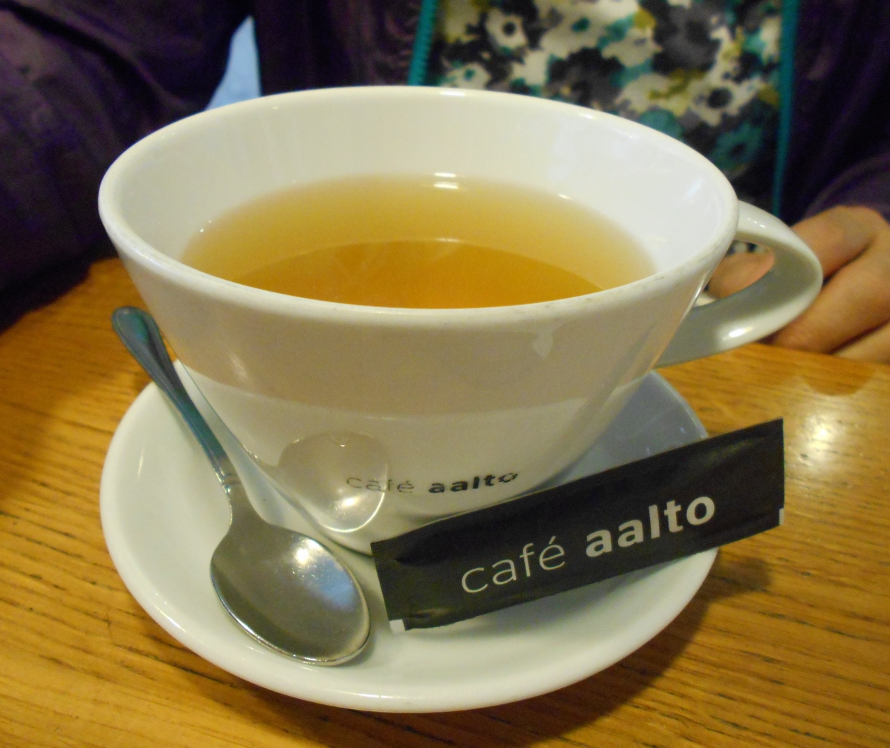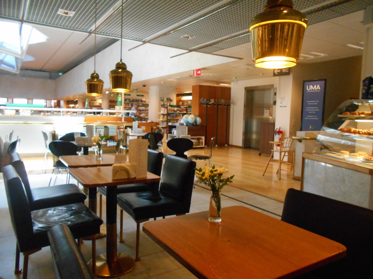 アカデミア書店にも行きたいしシナモンロールも食べたいし、どちらもできて便利なところです。店内2階のカフェ アアルトはお茶だけでなく食事もとれます。食べ物のにおいが店内に充満しているのでは? と思いましたがさほど感じませんでした。シナモンロールは5.40ユーロリンゴジュース5.30ユーロ、ジャスミン茶4.90ユーロでした。シナモンロールはサクッと感が強いですがシナモンの香りは強くありませんでした。日本語のメニューもあり助かりますが、二人用のテーブルが少し小さいように思いました。ゆっくり新聞を読むご婦人がいたり子供連れのカップルがいたり客層はいろいろです。