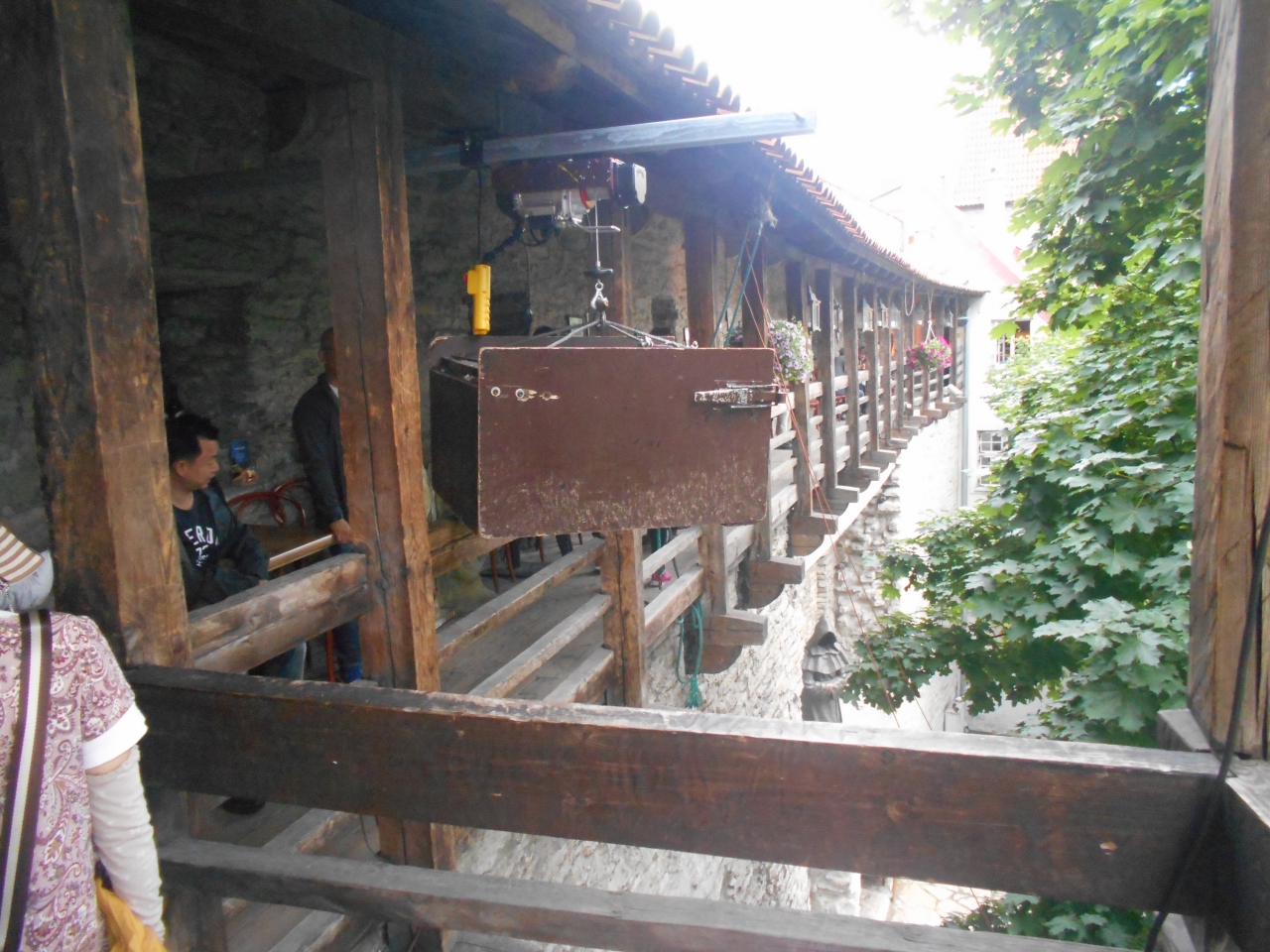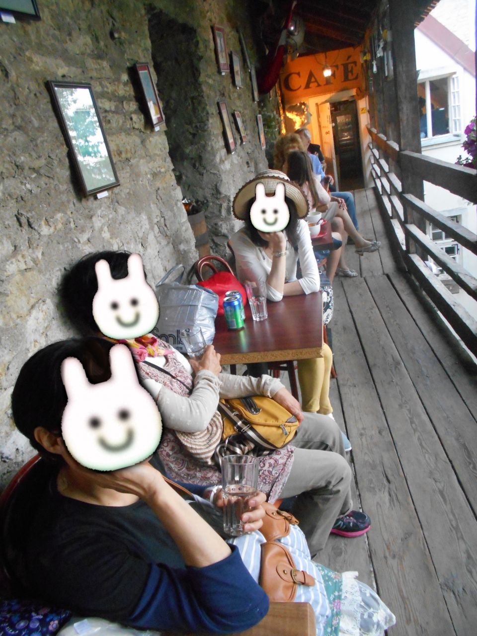 すぐ横のネイツィトルンにもカフェがあるようでどちらに行こうか迷ったのですが修道士のちょっと不気味な銅像に誘われて城壁にへばりつくようにある階段を上っていきました。階段は1つ1つが高くて足をあげるのが大変でしたが上からの景色は最高でした。城壁をそのまま利用しているので細長い廊下にテーブルが置いてあります。一番奥で若い女性2人が働いていましたがそこまで行って注文します。お客さんが少ない時なら注文を取りに来てくれるかもしれませんが自分で行った方が早いです。まず席を取ったら注文して自分でテーブルまで運んでくるシステムです。手前に席を取ったらお客さんの前を「すいませ~ん」という感じで通らなくてはいけません。